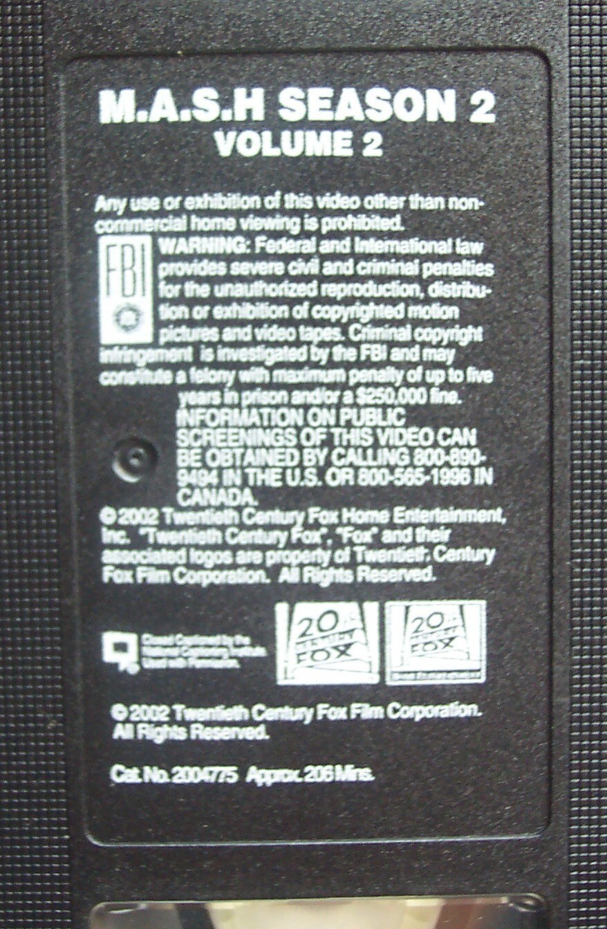 This is a VINTAGE M.A.S.H MASH Volume 2 TV Season 2 VHS VIDEO from 2002. It has a run time of 204 minutes. It is in great condition. The case has very minor wear from use, but nothing major. It includes 8 episodes. Combine auctions to save on shipping. EAG o