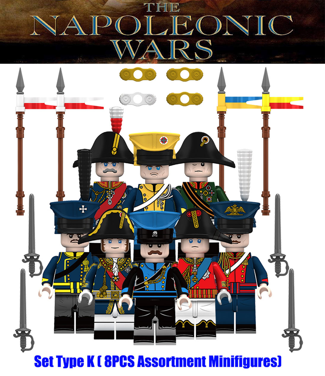 Napoleonic Wars Custom 4 Countries Commanders & Soliders Minifigure Set B