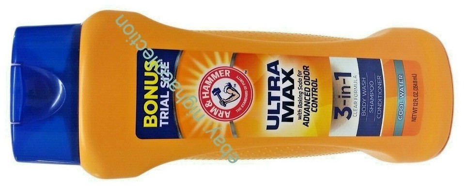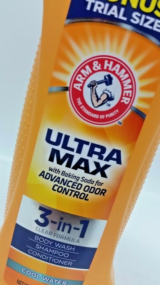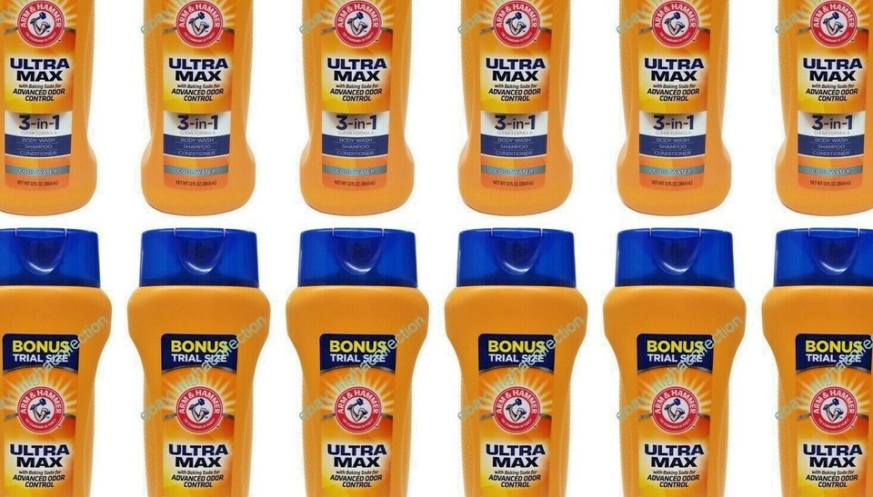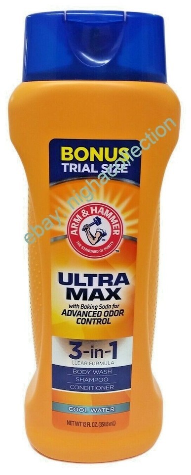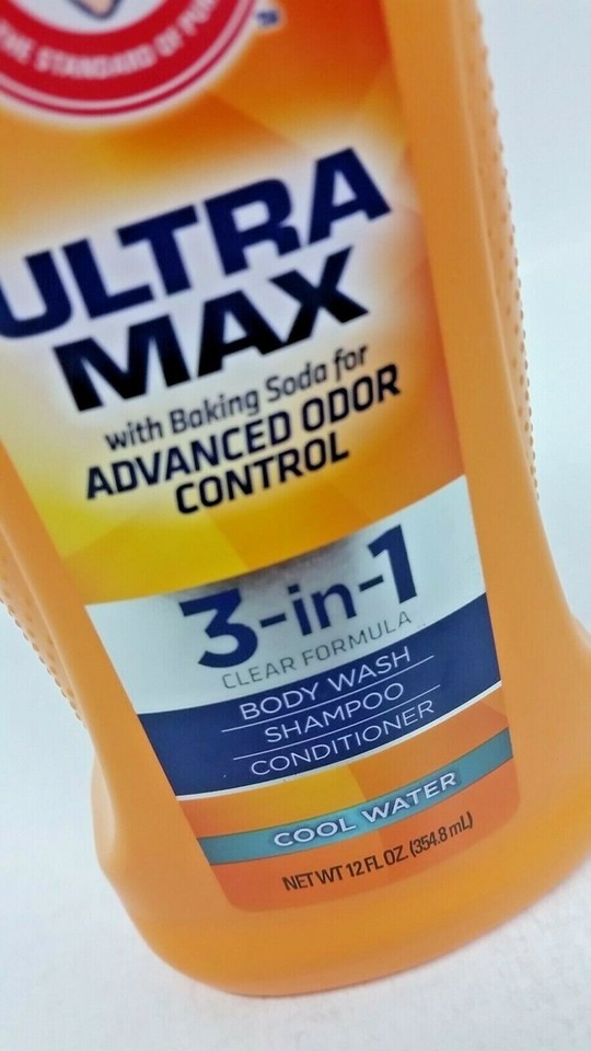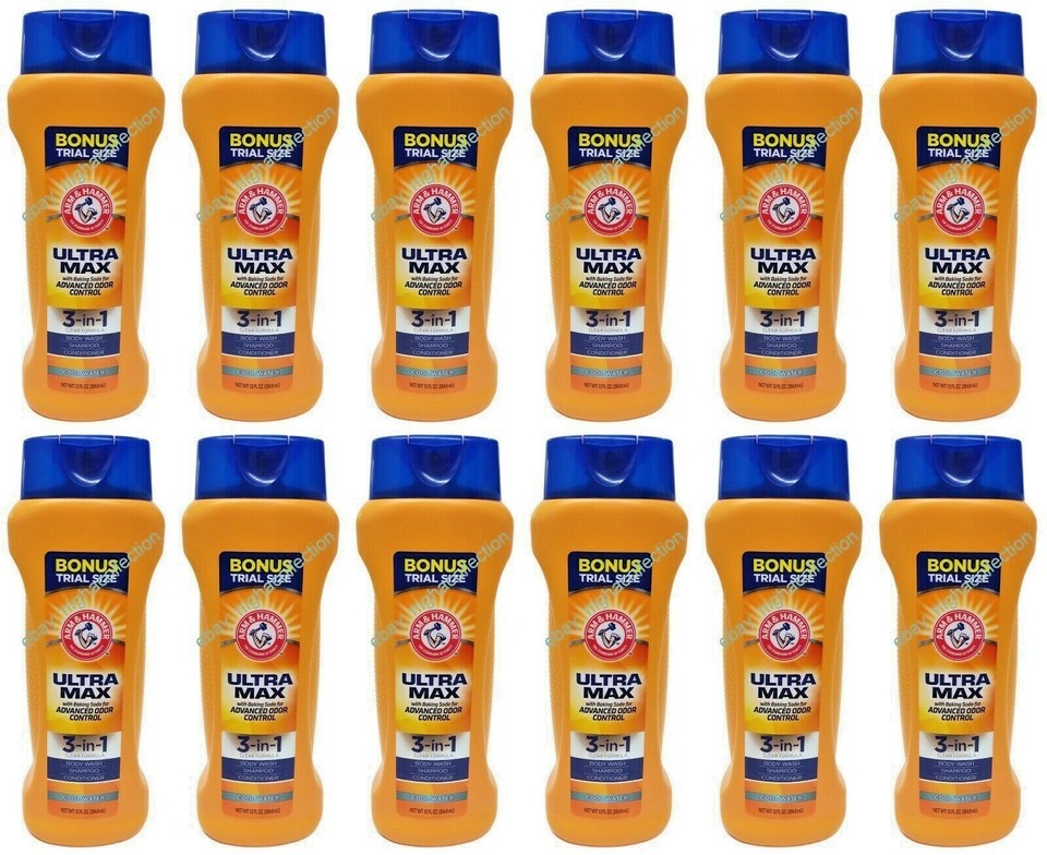 12x Arm Hammer Ultra Max COOL WATER 3-in-1 Body Wash Shampoo Conditioner 12 ozEa