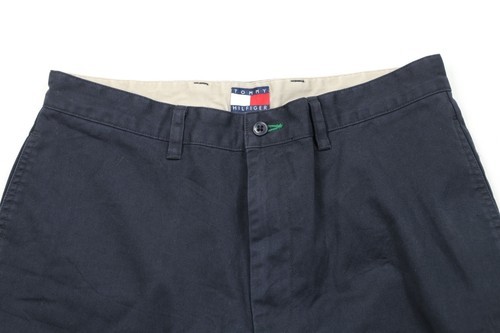 Vintage 90s Tommy Hilfiger Mens 32 Faded Above Knee Golf Chino Shorts Navy Blue