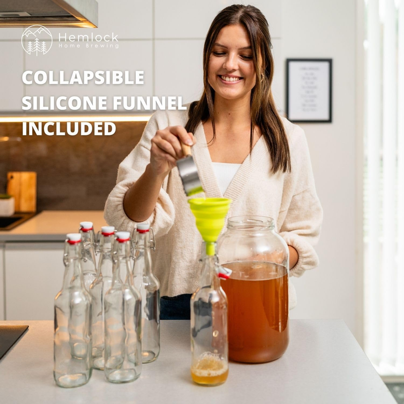 Complete Brewing Kit with Funnels: Our kombucha bottle kit includes a collapsible silicone funnel for easy storage and a pouring funnel perfectly sized to fit the bottles, making filling and transferring liquids mess-free.