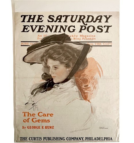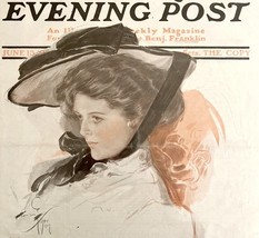 Saturday Evening Post Cover 1908 Fisher Lithograph Woman In Hat Print Art HM1G