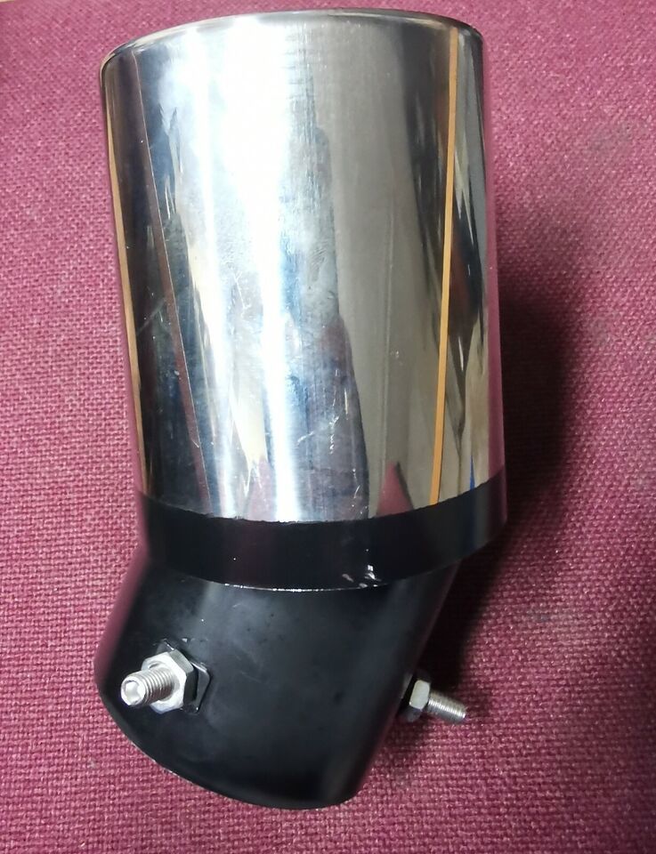 , will fit larger Saloon and executive vehicles 4x4, large or custom outlets! Improve the look of your vehicle with this superb looking exhaust - sports style Chrome Steel reflective design. Input is curved to accomodate a downwards facing exhaust Fits sizes up to 88 mm Diameter exhaust outlets