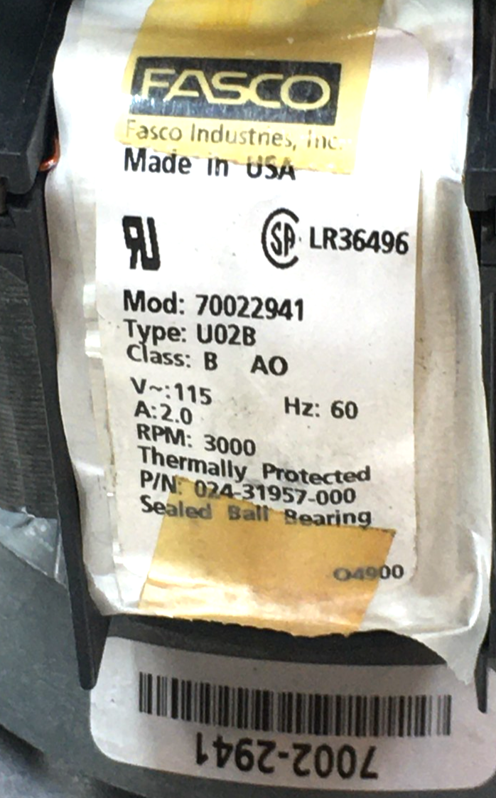 This is FASCO 70022941 Furnace Draft Inducer Blower Motor 024-31957-000 3000 RPM V115 used part.