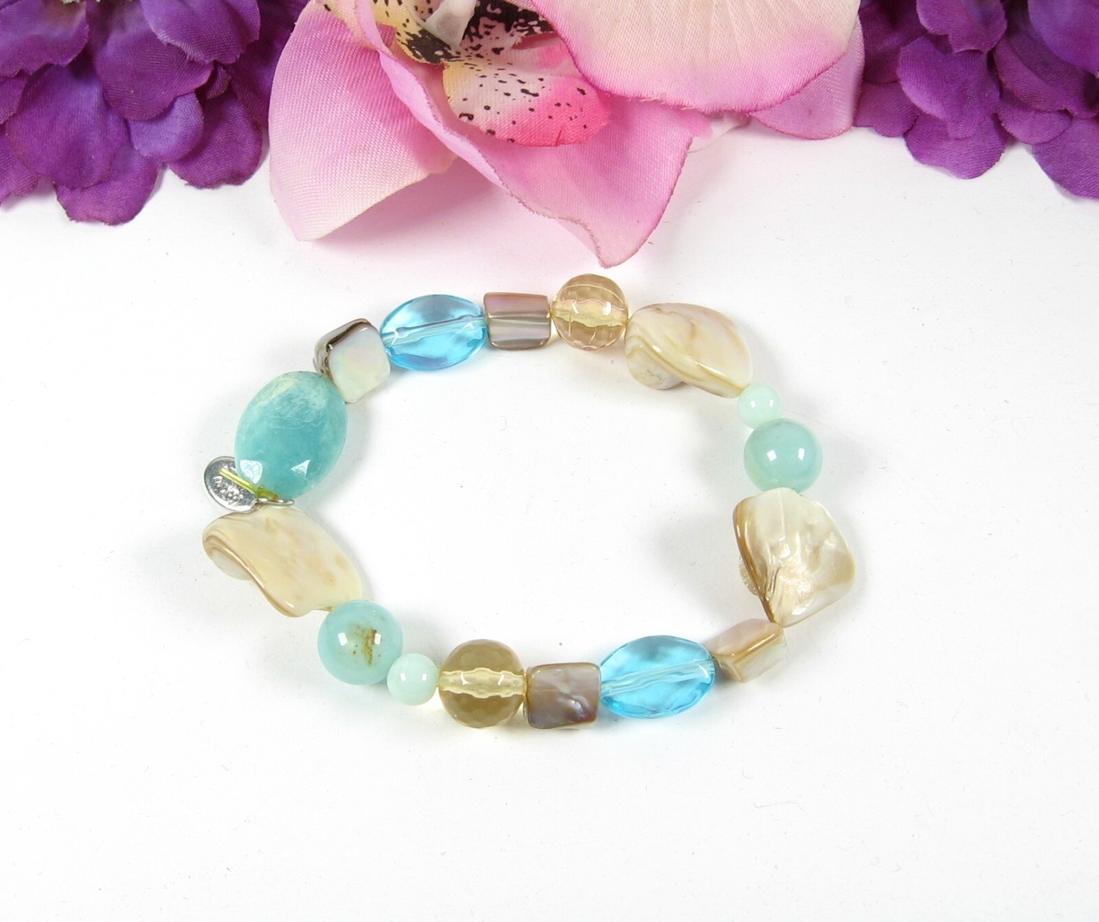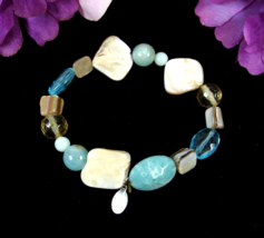 Cookie Lee Abalone SHELL Beaded BRACELET Shades of Blue Plastic Beads Elastic