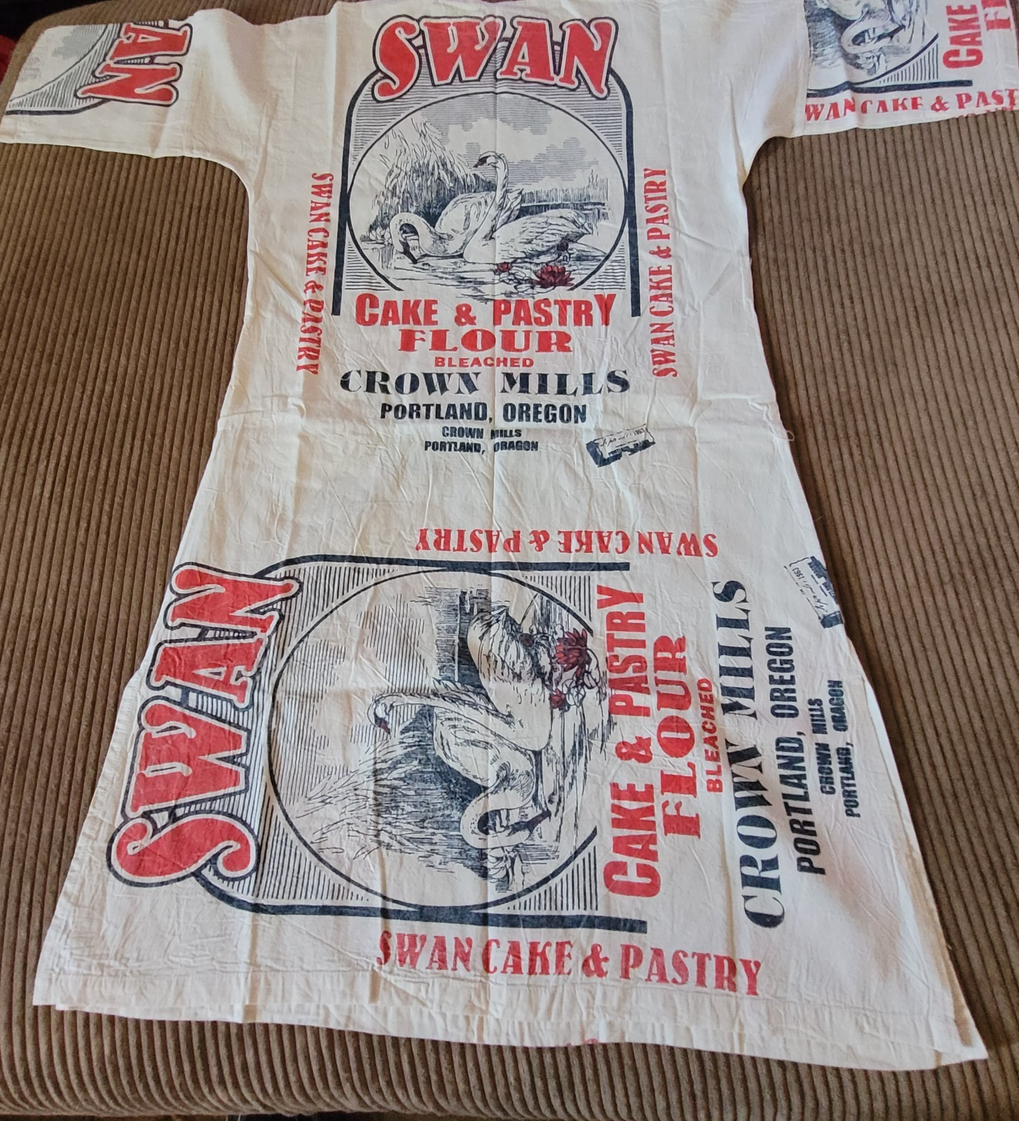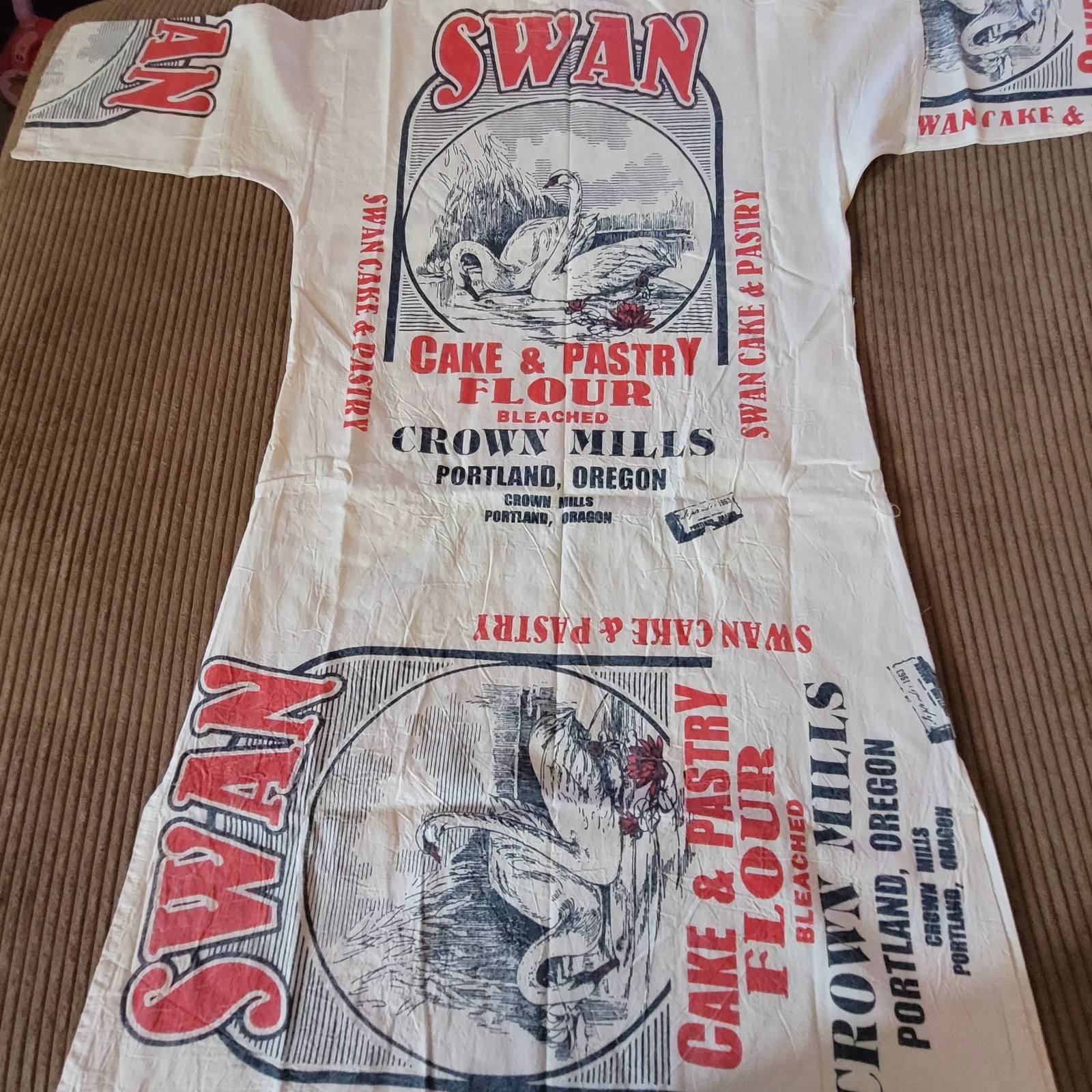 Flour Sack Dress Swan Vintage Look Feed Bag Garden Hippie Boho One Size Relaxed