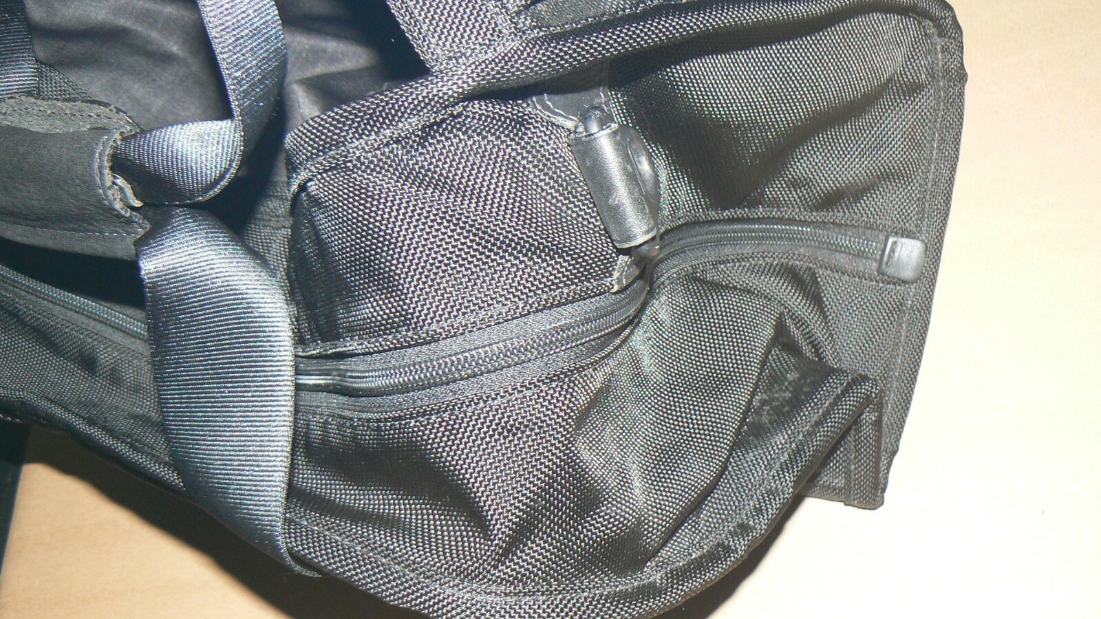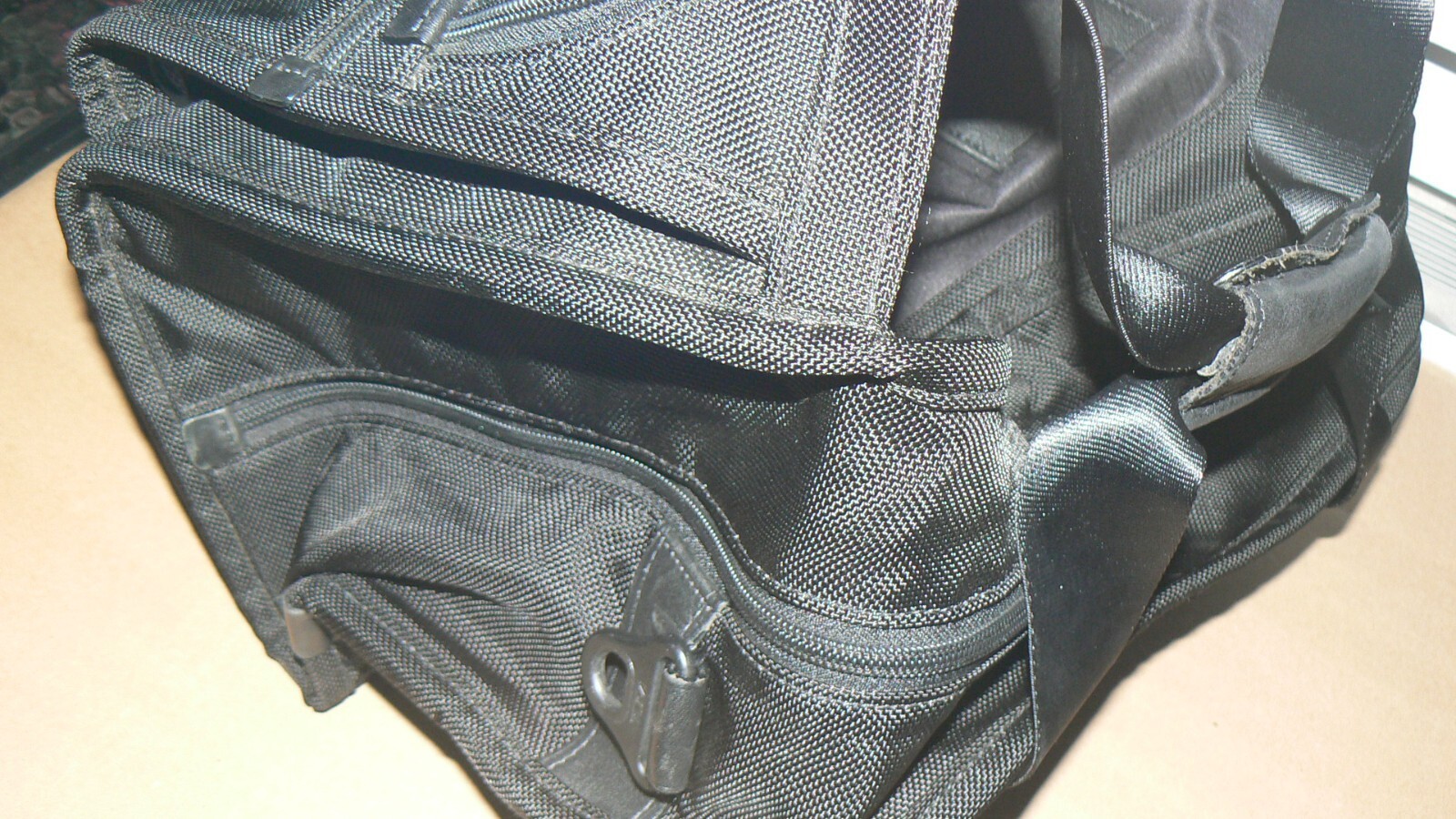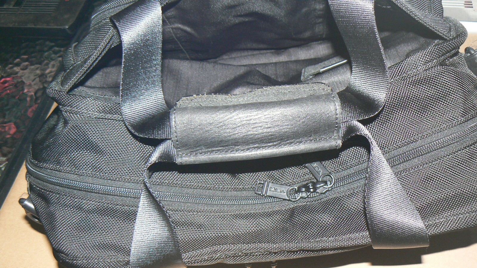 Pre-owned. Shows light wear from normal use, including minor fraying on the handle grip. Zippers and compartments are fully functional. Interior is clean and in good shape.