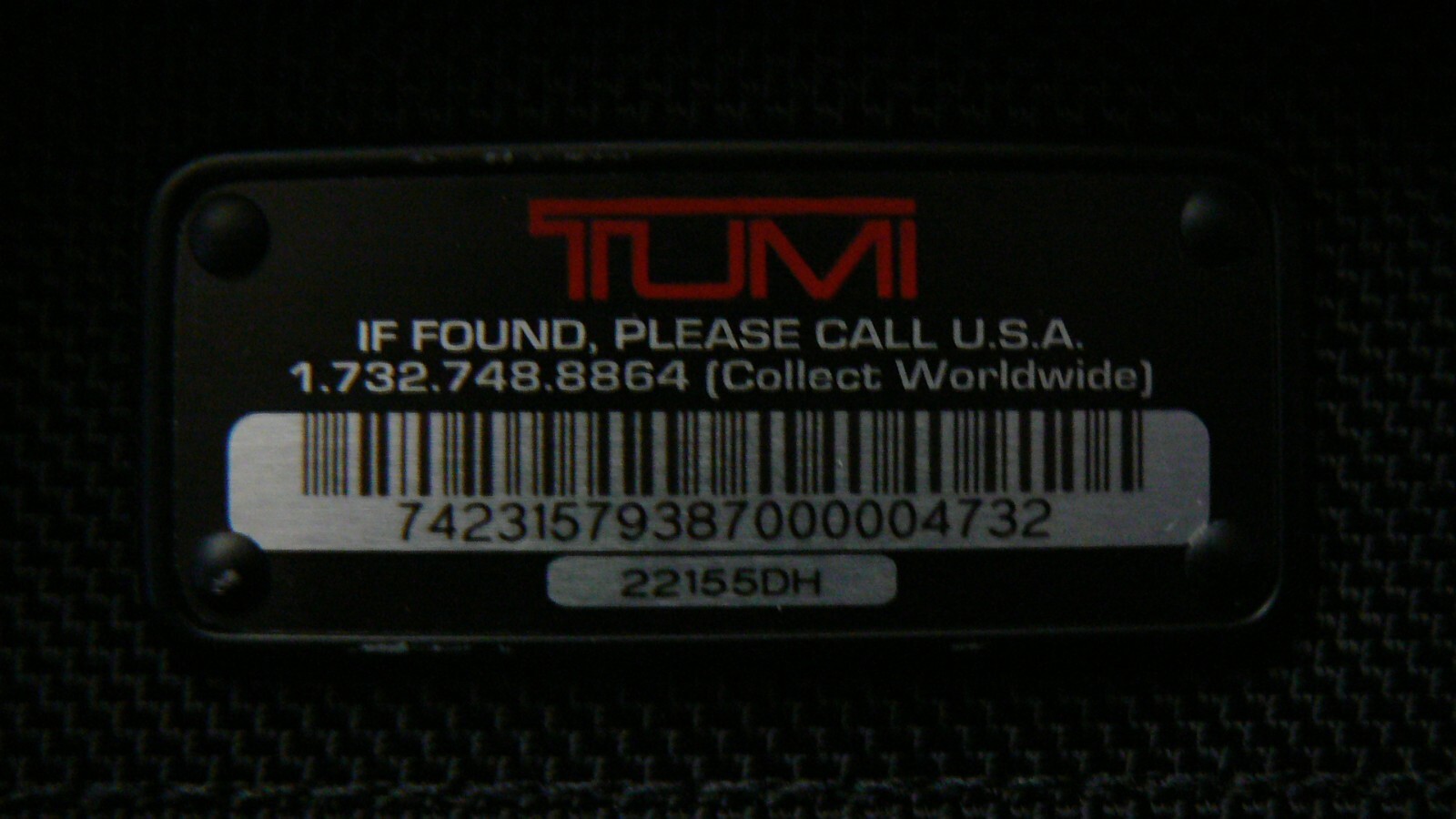 Genuine TUMI Alpha 2 briefcase, model 22155DH. Made from durable ballistic nylon with multiple zip compartments, reinforced padded carry handles, and internal organizer loops. Includes TUMI Tracer plate with ID number 74231579387000004732 for added security.