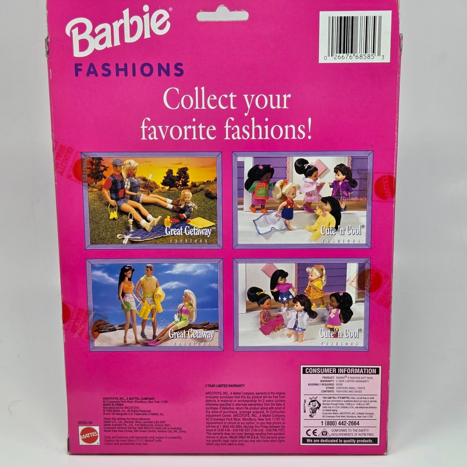 VINTAGE 1998 BARBIE 3 FASHION GIFT PACK CLOTHES # 68585-94 MATTEL NEW IN PACKAGE