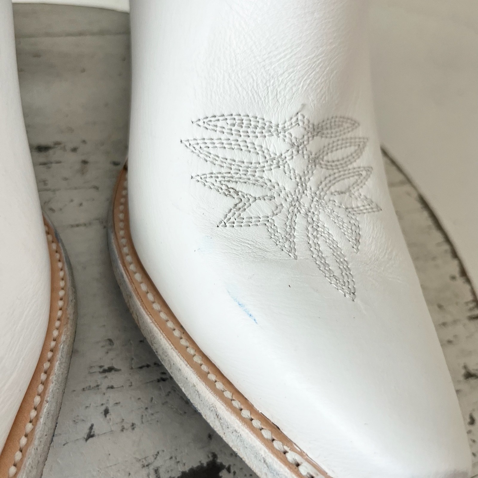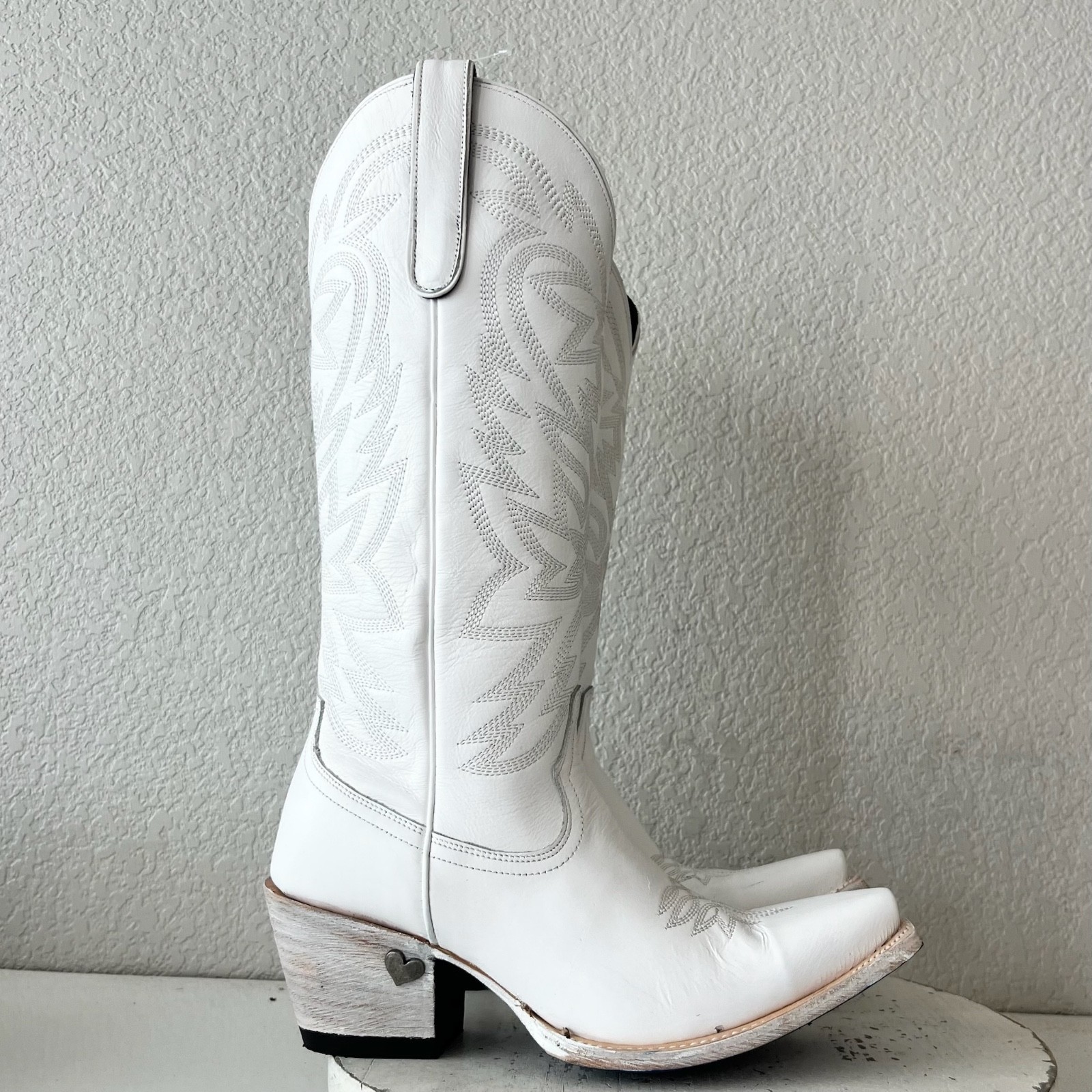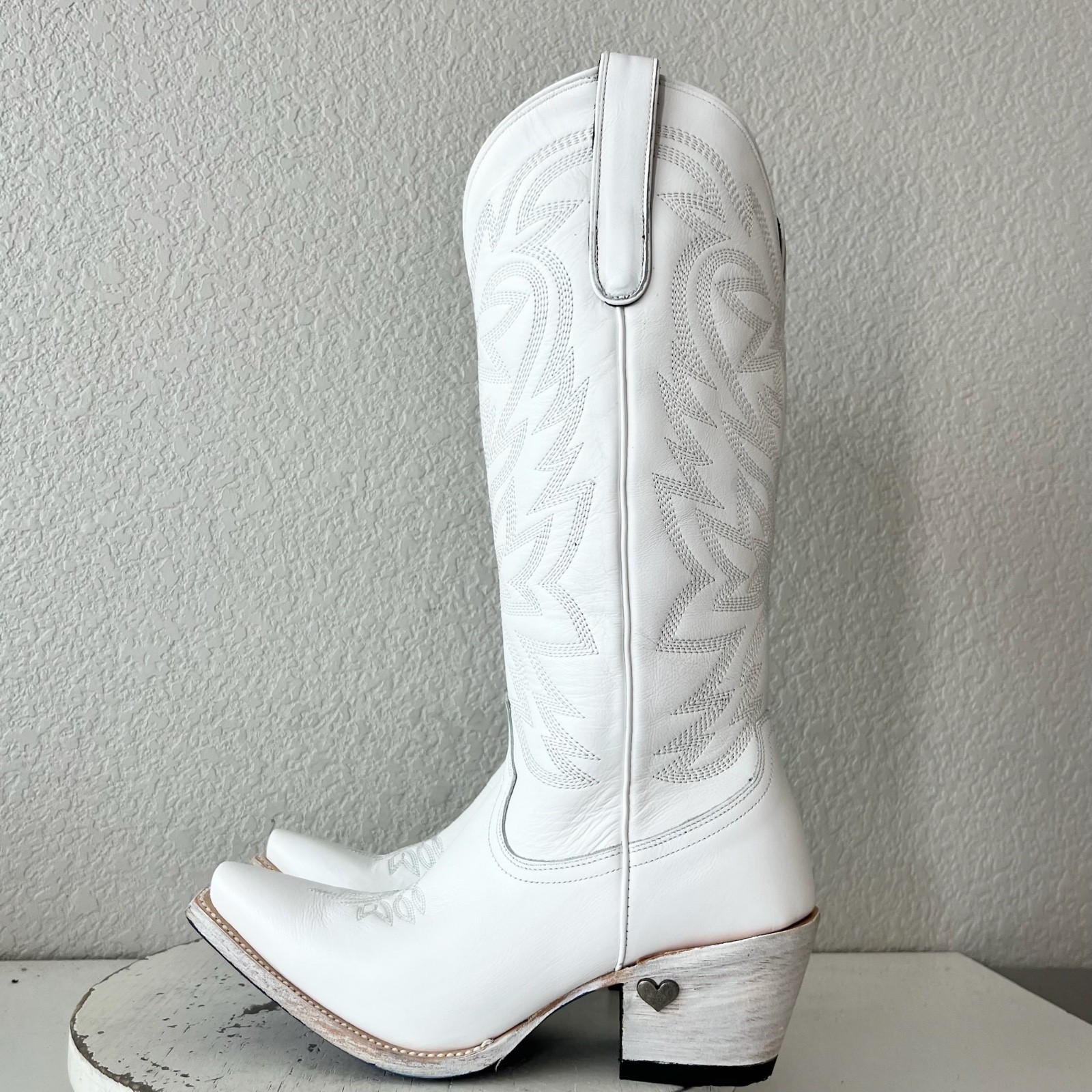 About the Boots: Designed to make a statement, this limited-edition Smokeshow features matte white leather with intricate embroidery that embodies both elegance and tradition. The scalloped edges and functional side zipper ensure the perfect mix of style and practicality. But the real standout details? Megan?s signature blue bottom, imprinted with her name, and a heart-shaped heel pin?a personal touch that makes this boot uniquely hers. Whether you're a die-hard Megan fan or simply love Western fashion, this boot is made to be worn, loved, and remembered.