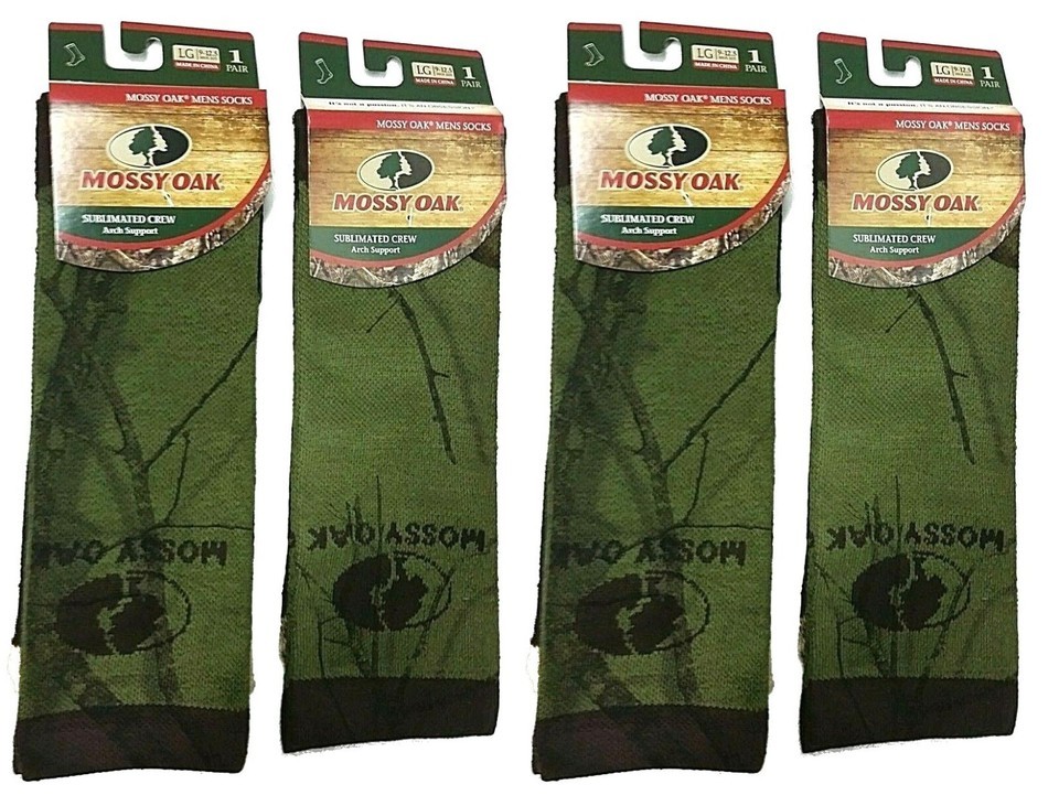( 4 Pairs ) Mossy Oak Men's Sublimated Crew Socks Camo Arch Support NEW with TAG