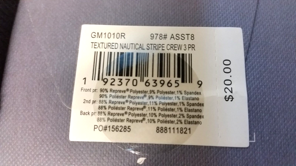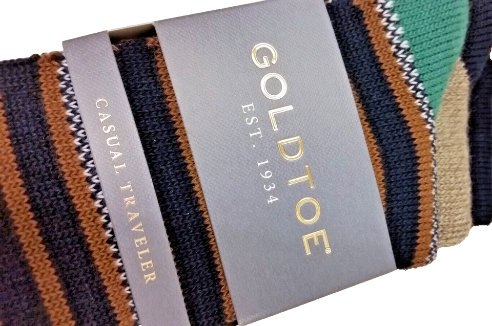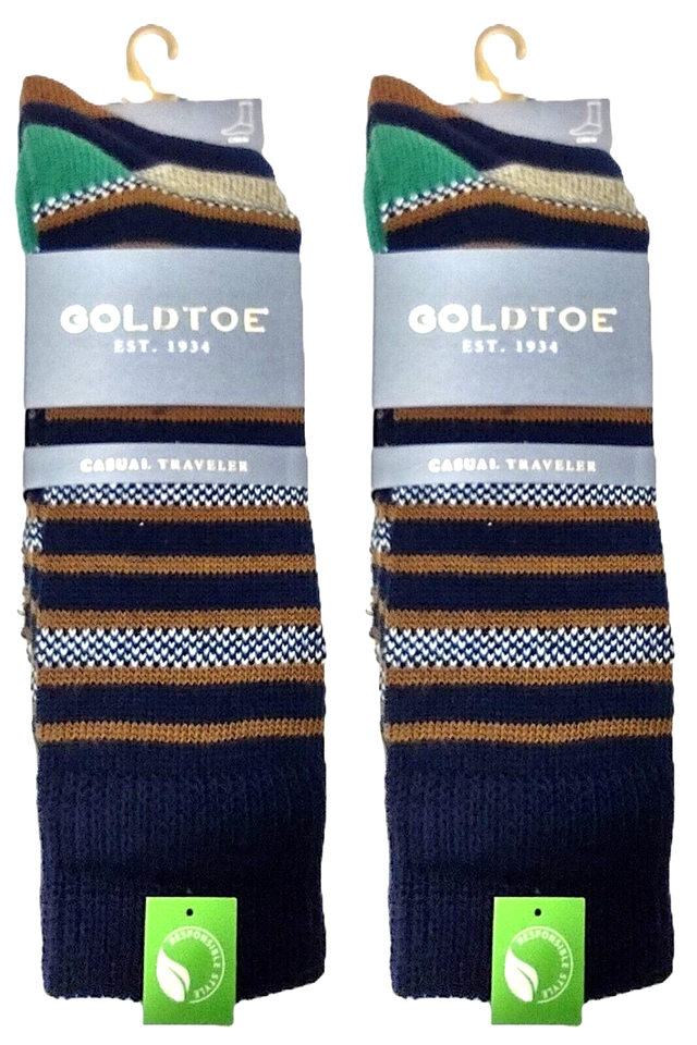 2pkx 3Pr=6Pair Men's GOLDTOE Casual Traveler Textured Nautical Stripe Crew Socks