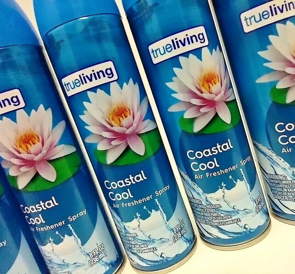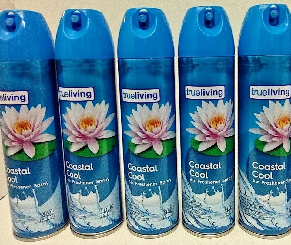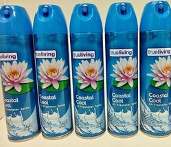 ( LOT of 5 ) TRUELIVING Scented Air Freshener Spray COASTAL COOL Eliminates Odors
