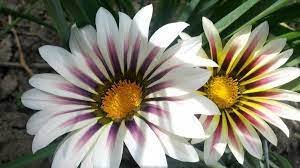 Distinctive Petals: Gazania Treasure Flowers are celebrated for their striking petals. Each blossom features a unique pattern of white and yellow petals with eye-catching purple and black stripes, creating a visually intriguing display in your garden.