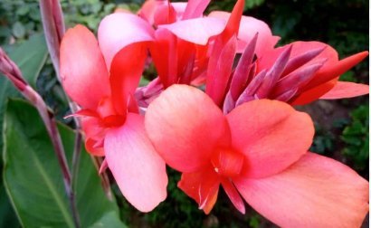 20 Seeds Heirloom Canna Lily Pink Redish Orange Blooms with Green Leaves