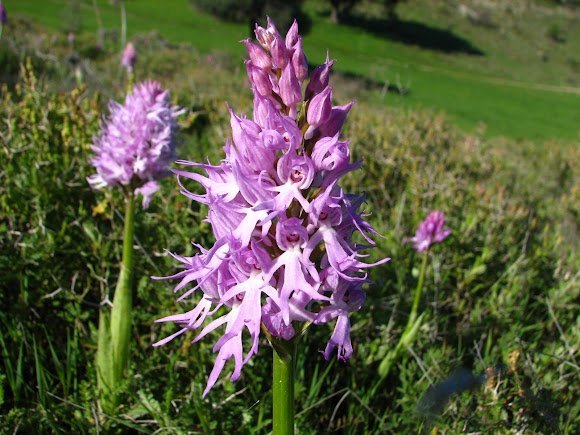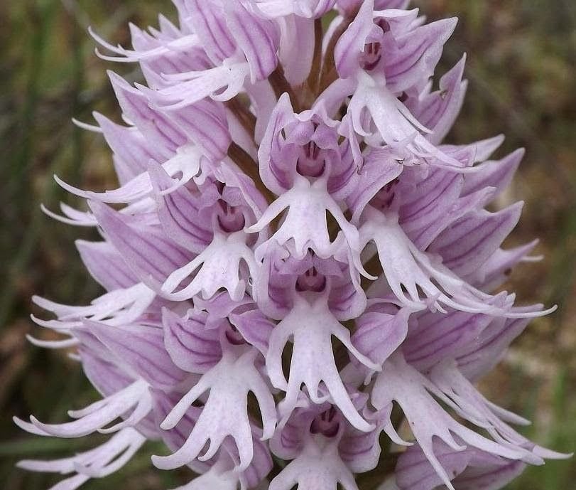 Orchis italica, the naked man orchid or the Italian orchid, is a species of orchid native to the Mediterranean Basin. It gets its common name from the lobed lip (labellum) of each flower which mimics the general shape of a naked man.