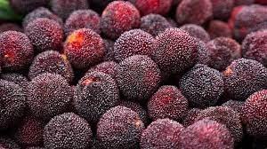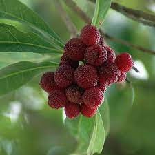 Myrica rubra, also called yangmei (Chinese: ??; pinyin: yngmi; Cantonese: yeung4 mui4; Shanghainese: [?i??.m??]), yamamomo (Japanese: ????, "mountain peach"), Chinese bayberry, Japanese bayberry, red bayberry, yumberry, waxberry, or Chinese strawberry (and often mistranslated from Chinese as arbutus) is a subtropical tree grown for its fruit.