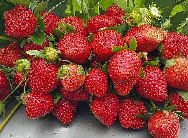 The garden strawberry is a widely grown hybrid species of the genus Fragaria, collectively known as the strawberries, which are cultivated worldwide for their fruit. The fruit is widely appreciated for its characteristic aroma, bright red color, juicy texture, and sweetness. It is consumed in large quantities, either fresh or in such prepared foods as jam, juice, pies, ice cream, milkshakes, and chocolates. Artificial strawberry flavorings and aromas are also widely used in products such as candy, soap, lip gloss, perfume, and many others.