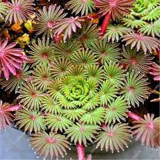A bulbous perennial, it grows to 815 cm (3.15.9 in) forming a mound of fresh green leaves, each leaf composed of three elongated leaflets. In late summer and autumn, narrow white tubular buds form at the tip of slender stems. A curved scarlet edging to each petal gives the appearance of a candy cane. The flowers open in full sunlight, but remain furled at other times.