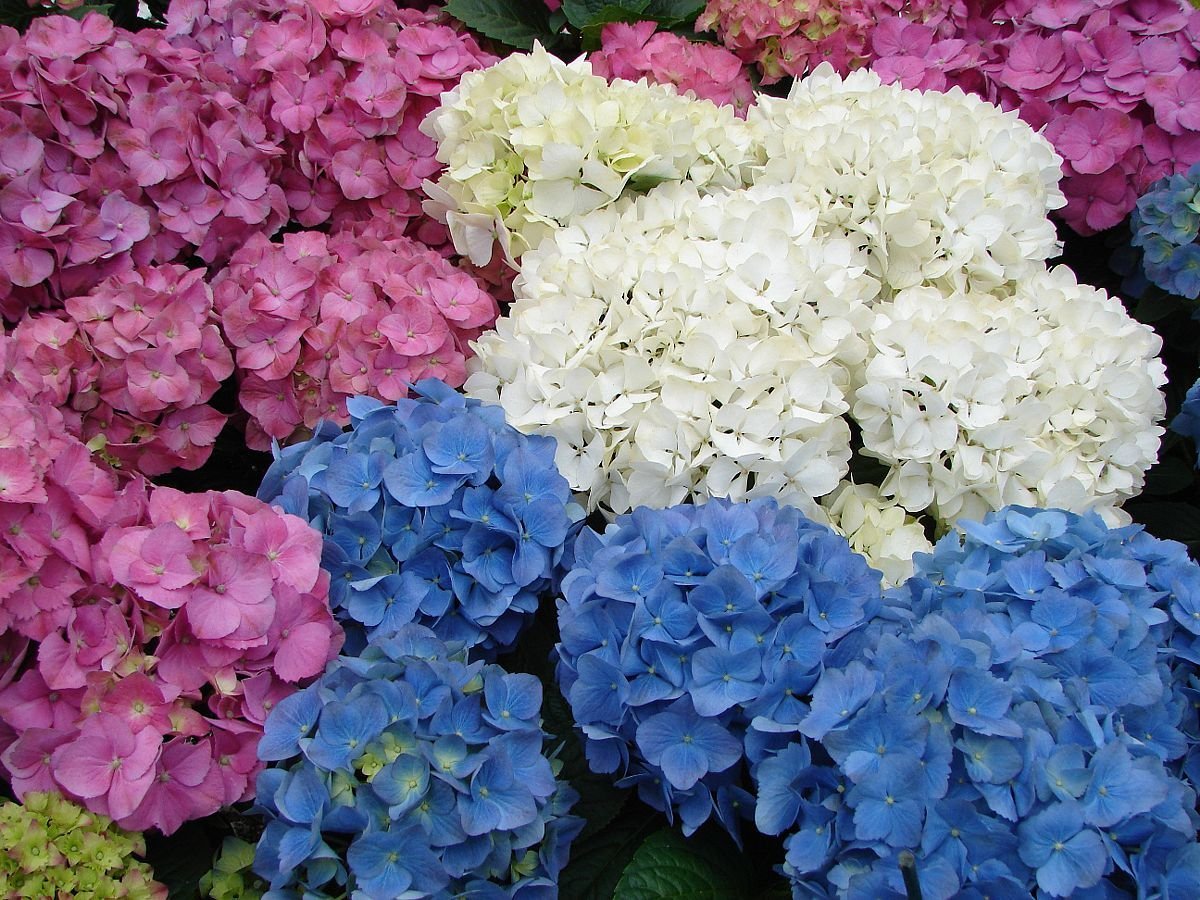 Hydrangea, common names hydrangea or hortensia, is a genus of over 75 species of flowering plants native to Asia and the Americas. By far the greatest species diversity is in eastern Asia, notably China, Korea, and Japan. Most are shrubs 13 m (3 ft 3 in 9 ft 10 in) tall, but some are small trees, and others lianas reaching up to 30 m (100 ft) by climbing up trees. They can be either deciduous or evergreen, though the widely cultivated temperate species are all deciduous.