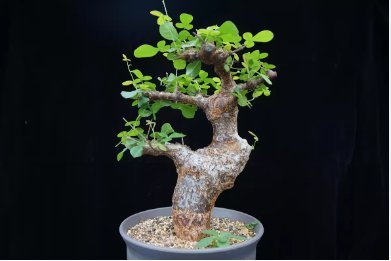 Commiphora orbicularis develops a unique swollen base (caudex) and interesting foliage, ideal for bonsai enthusiasts or anyone wanting an unusual potted plant. Includes 4 seeds.