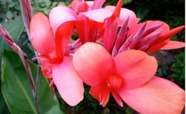 40 Seeds Heirloom Canna Lily Pink & Redish Orange Blooms with Green Leaves