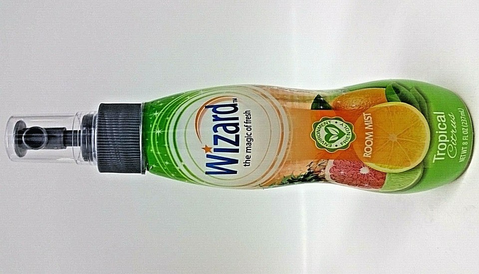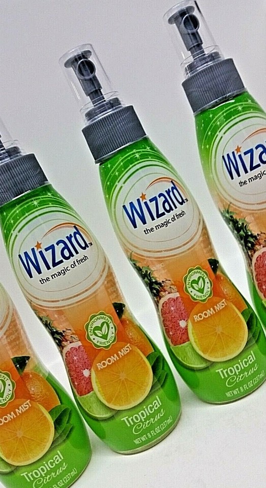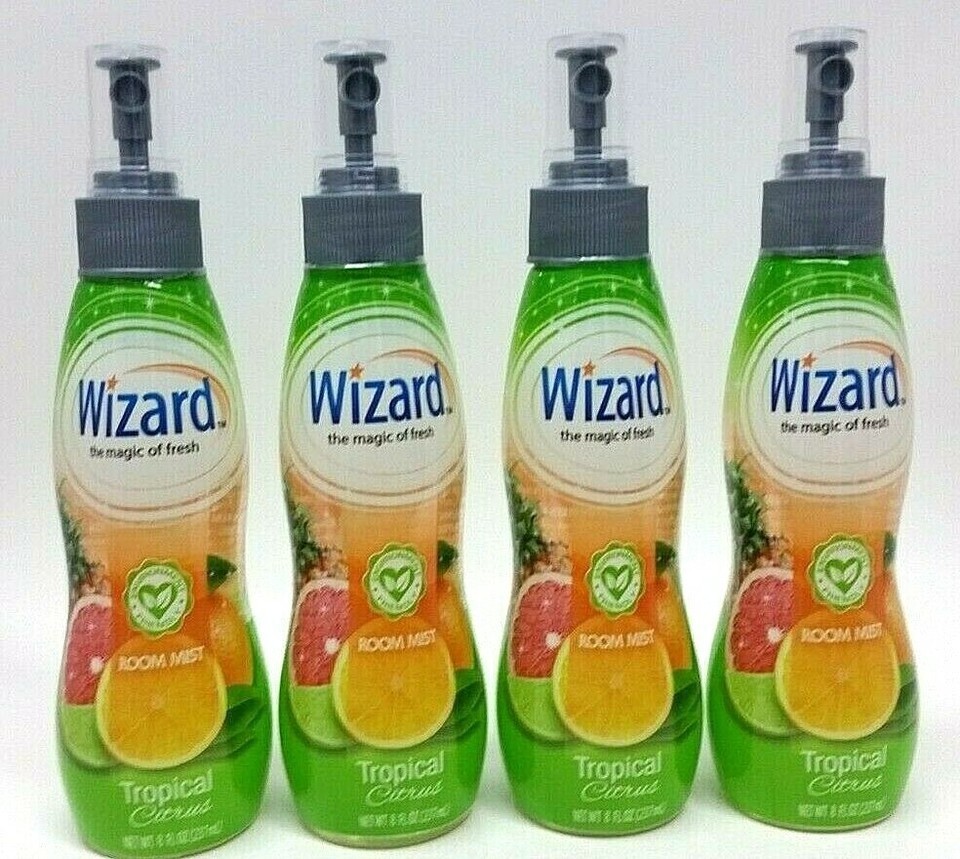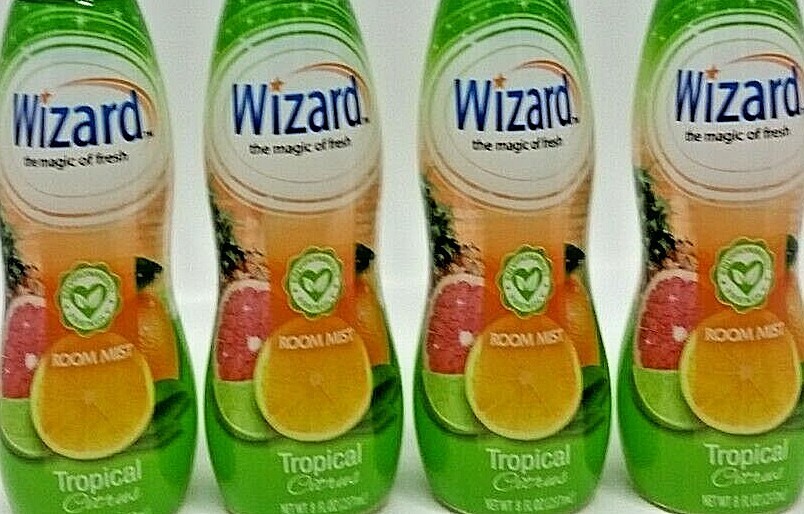 LOT 4 NEW WIZARD Air Freshener Spray TROPICAL CITRUS Fragrance ROOM MIST Eliminates Odors
