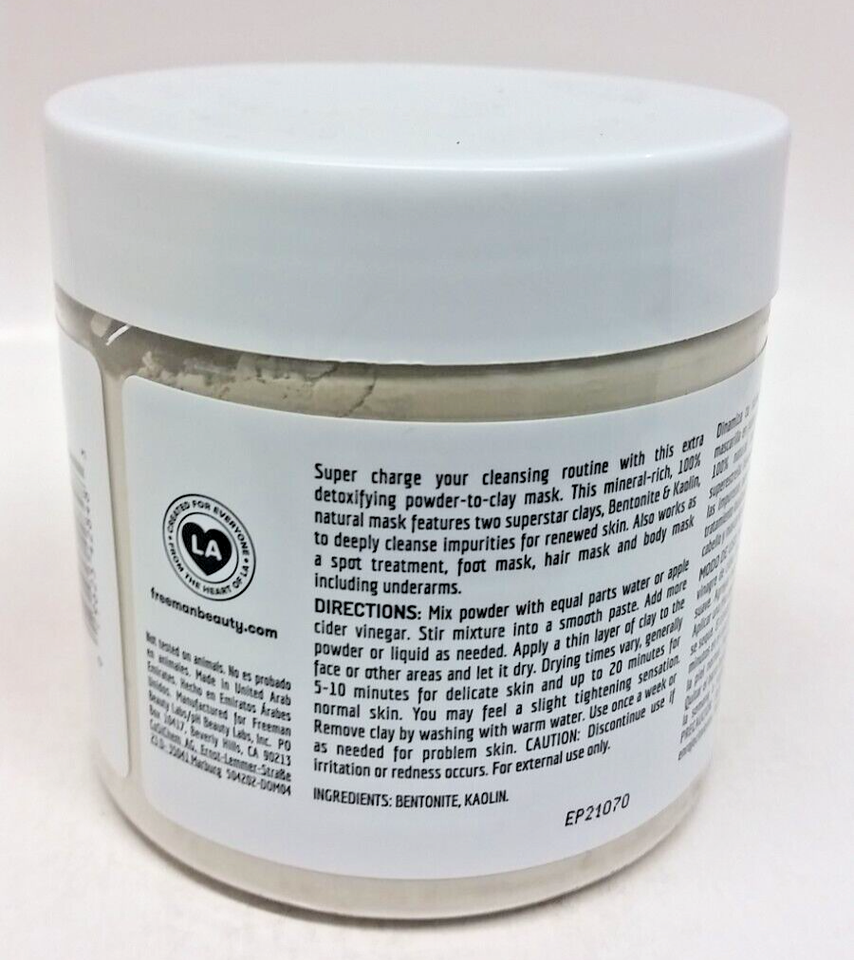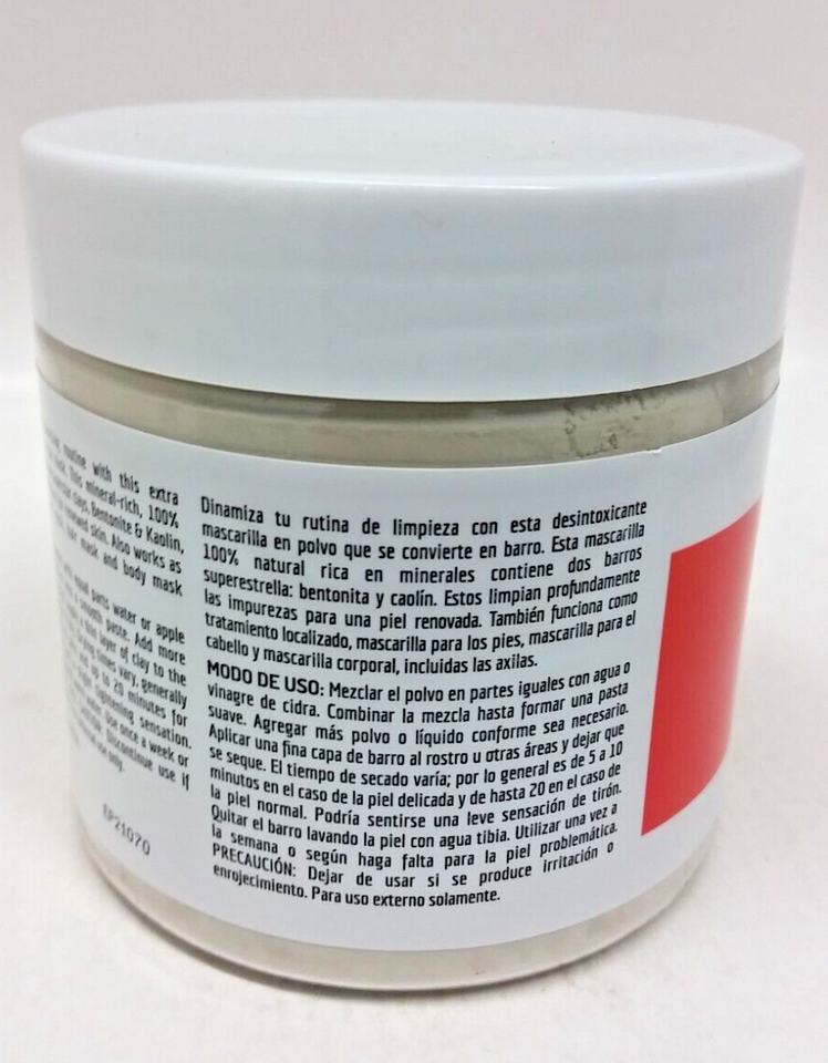 Super charge your cleansing routine with this extra-detoxifying powder-to-clay mask. This mineral-rich,100% natural mask features two superstar clays, Bentonite Kaolin, to deeply cleanse impurities for renewed skin. Also works as a spot treatment, foot mask, hair mask and body mask including underarms.