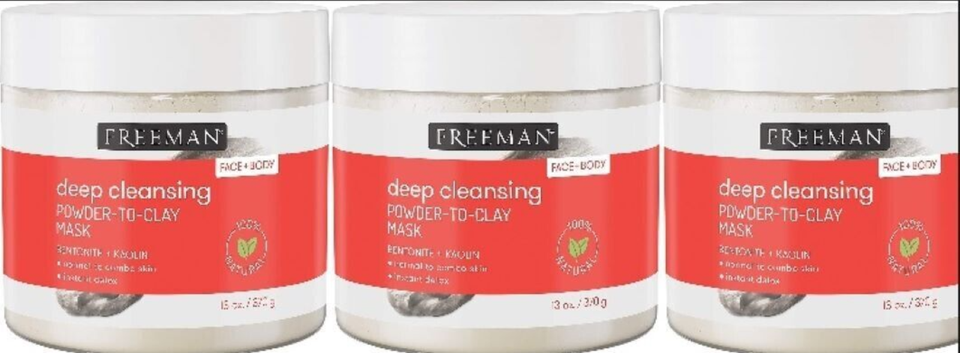 ( LOT 3 ) FREEMAN Face Facial Deep Cleansing Clay, Blackheads Mask, 13 oz Each Acne All Natural Dtox