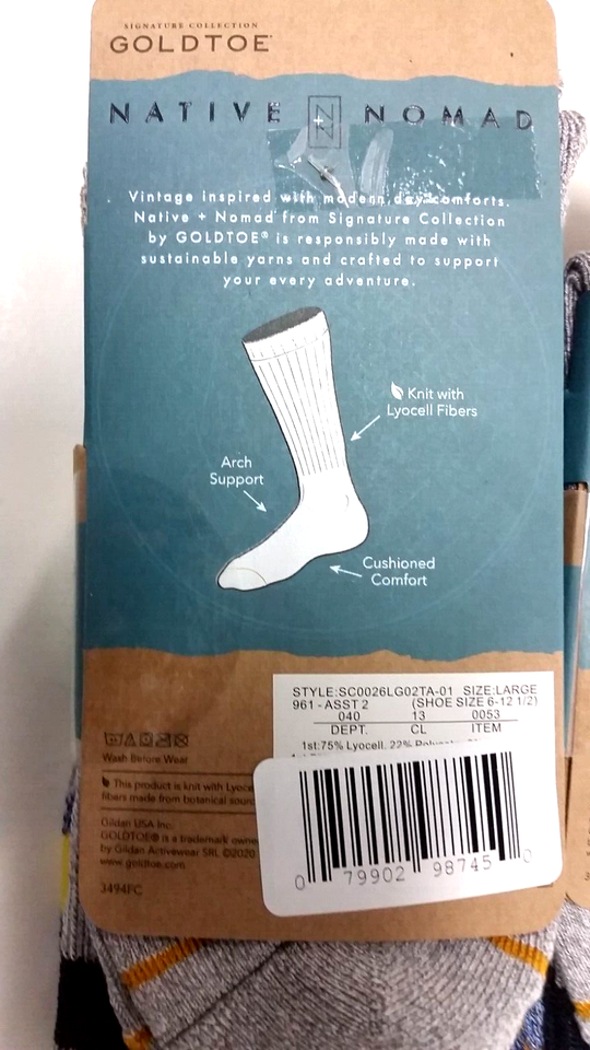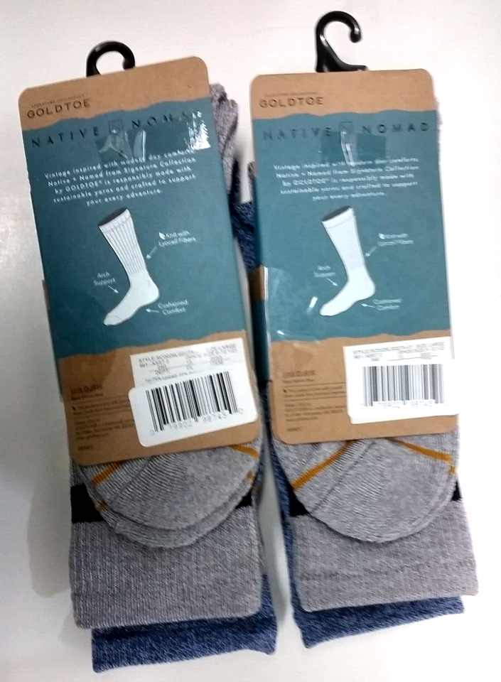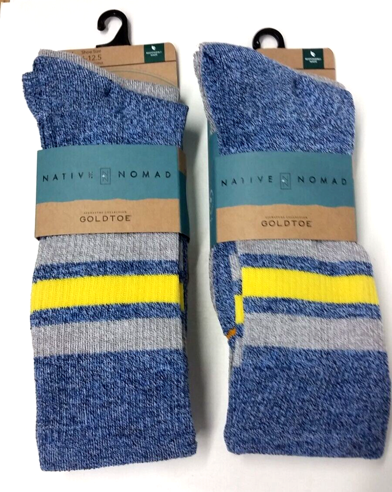 2 Pks= 4 PAIRS GOLD TOE Men's Native Nomad Crew Socks, 6-12.5 LIMITED EDITION