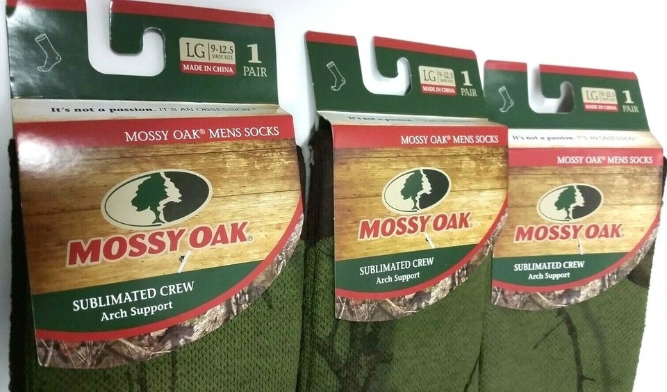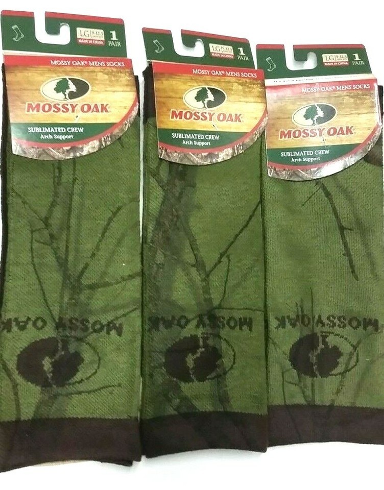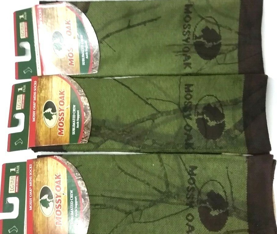 ( 3 Pairs ) Mossy Oak Men's Sublimated Crew Socks Camo Arch Support NEW with TAG