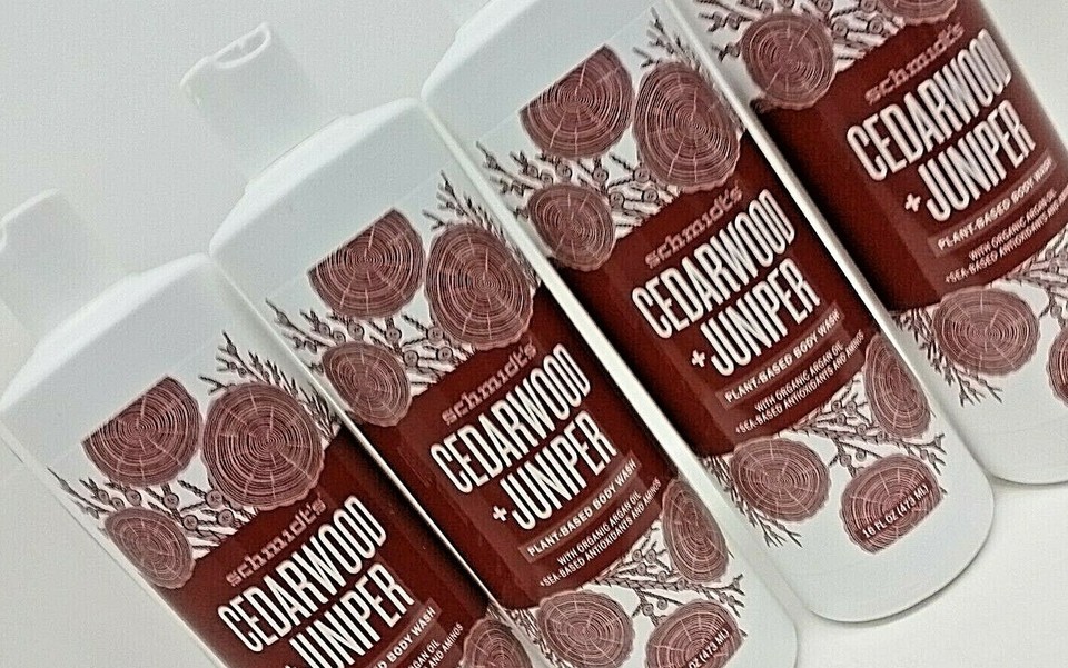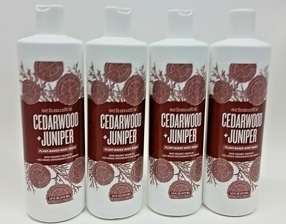 ( Lot 4 ) Schmidt's Natural Cedarwood Juniper Plant Based BODY WASH 16 Oz Each