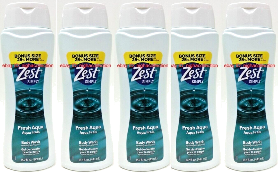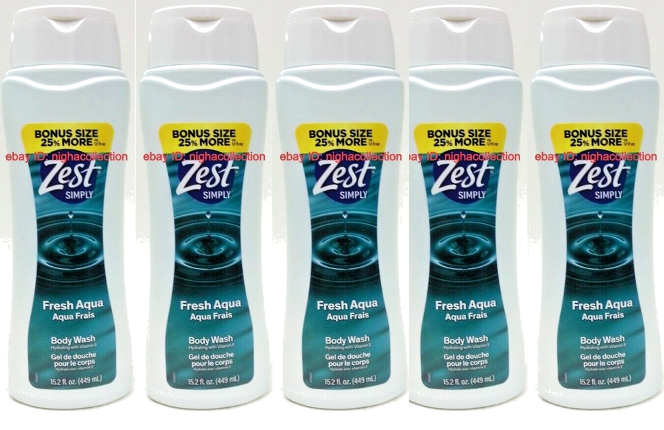 ( LOT 5 ) ZEST Simply Body Wash FRESH AQUA With Vitamin E Hydrating 15.2 oz Each