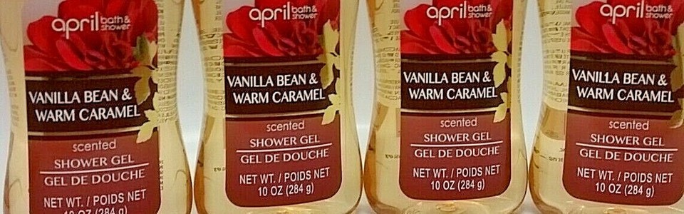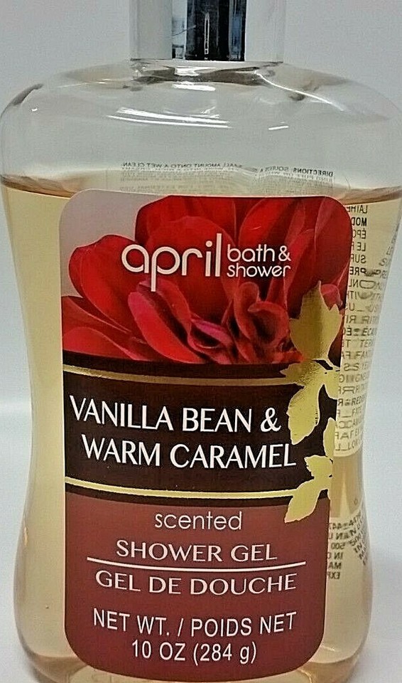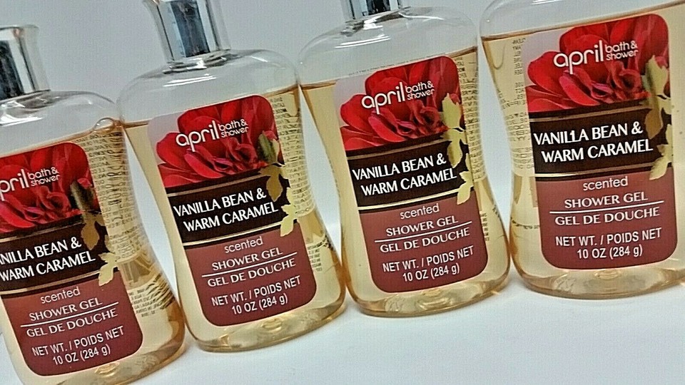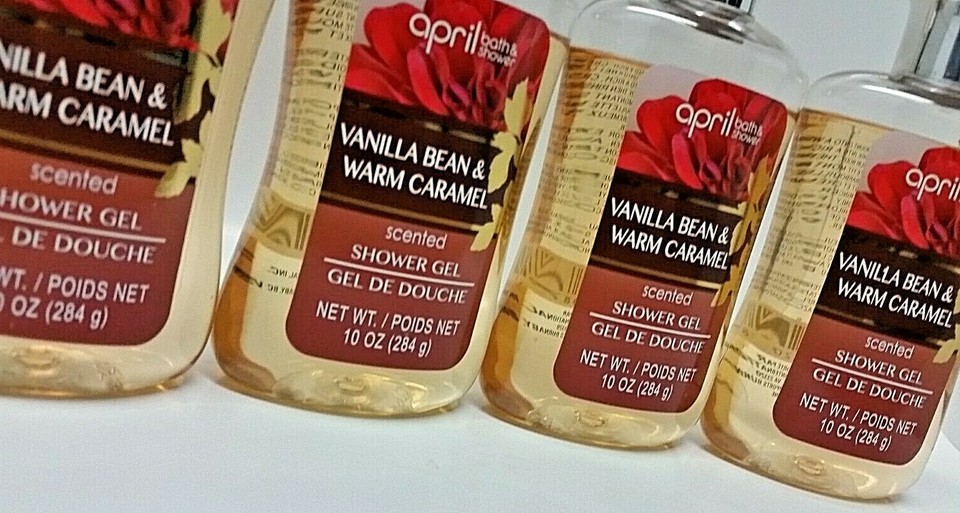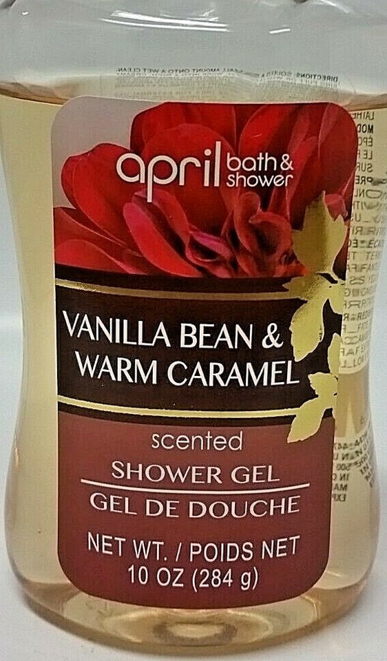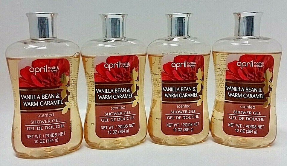 4 Bottles April Bath & Shower Gel Vanilla Bean & Warm Caramel Scented 10 oz Ea