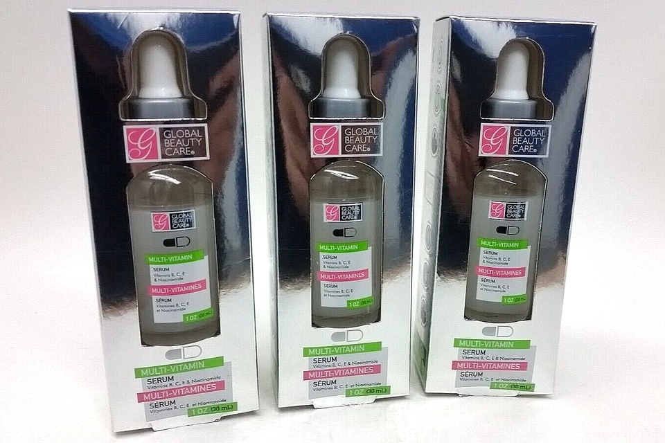 ( LOT 3 ) Global Beauty Care Serum Multi-Vitamin B, C, E and Niacinamide 1 oz ( 30 ml ) Each SEALED