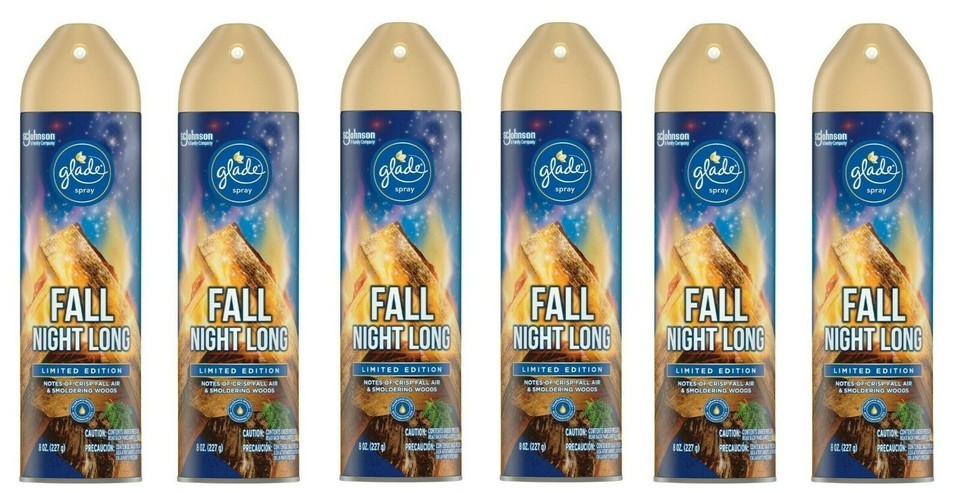 6 pk S.C.Johnson Glade Scent Air Freshener Spray Fall Night Long Eliminate Odors