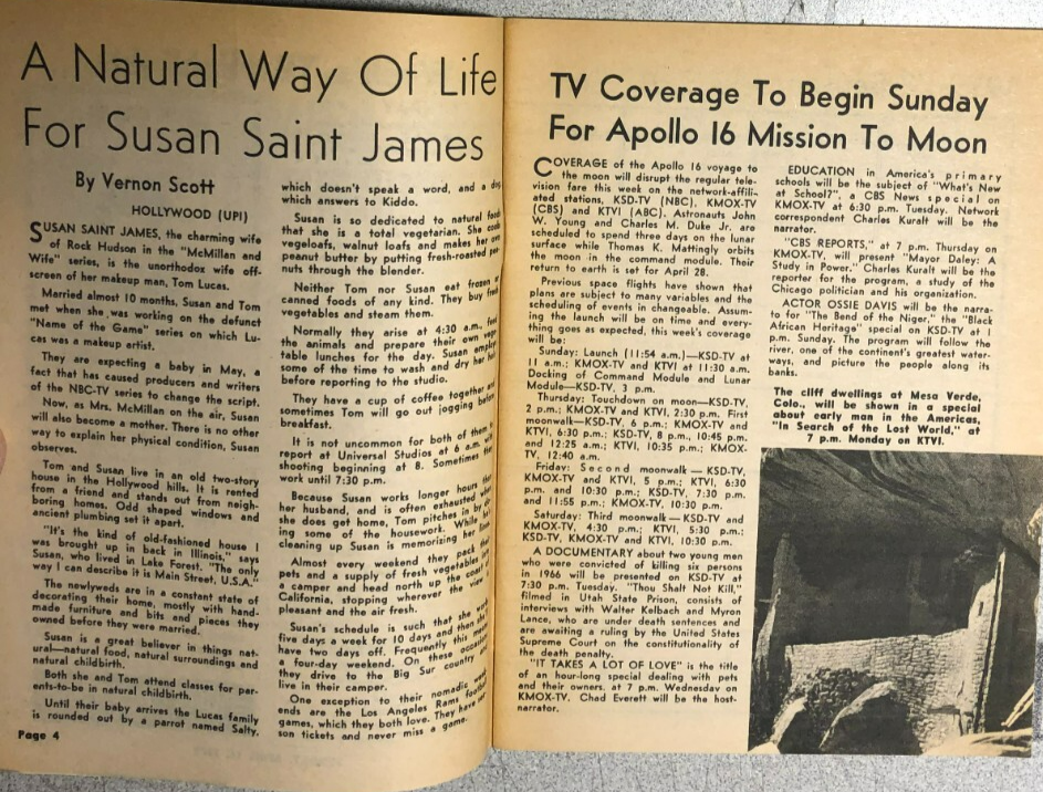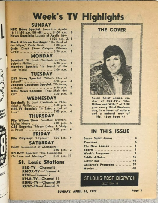 TV MAGAZINE St. Louis (MO) Post-Dispatch April 16, 1972 Susan Saint James cover