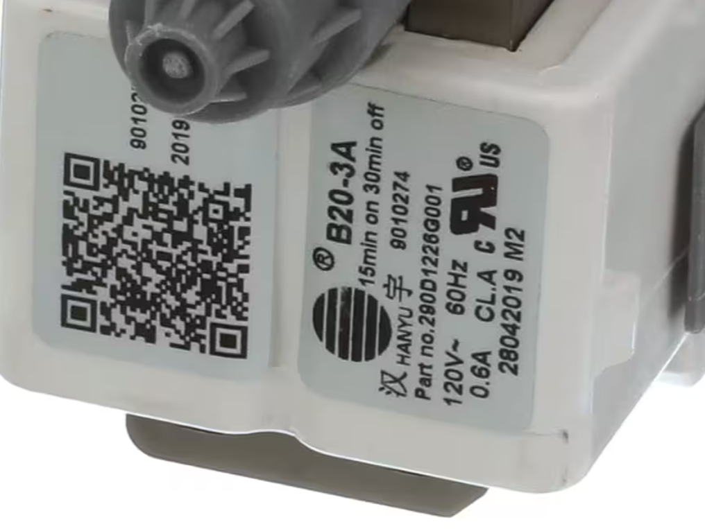 Ensure optimal water flow and cleaning performance in your washer with the GE Appliance B20-3A (290D1226G001) Recirculation Pump Assembly. This 120V, 60Hz pump is designed to recirculate water during the wash cycle, improving detergent distribution and overall efficiency. If your washer is leaving clothes soapy or failing to clean properly, a faulty recirculation pump might be the cause. This genuine GE part offers a reliable replacement to restore full washing performance.