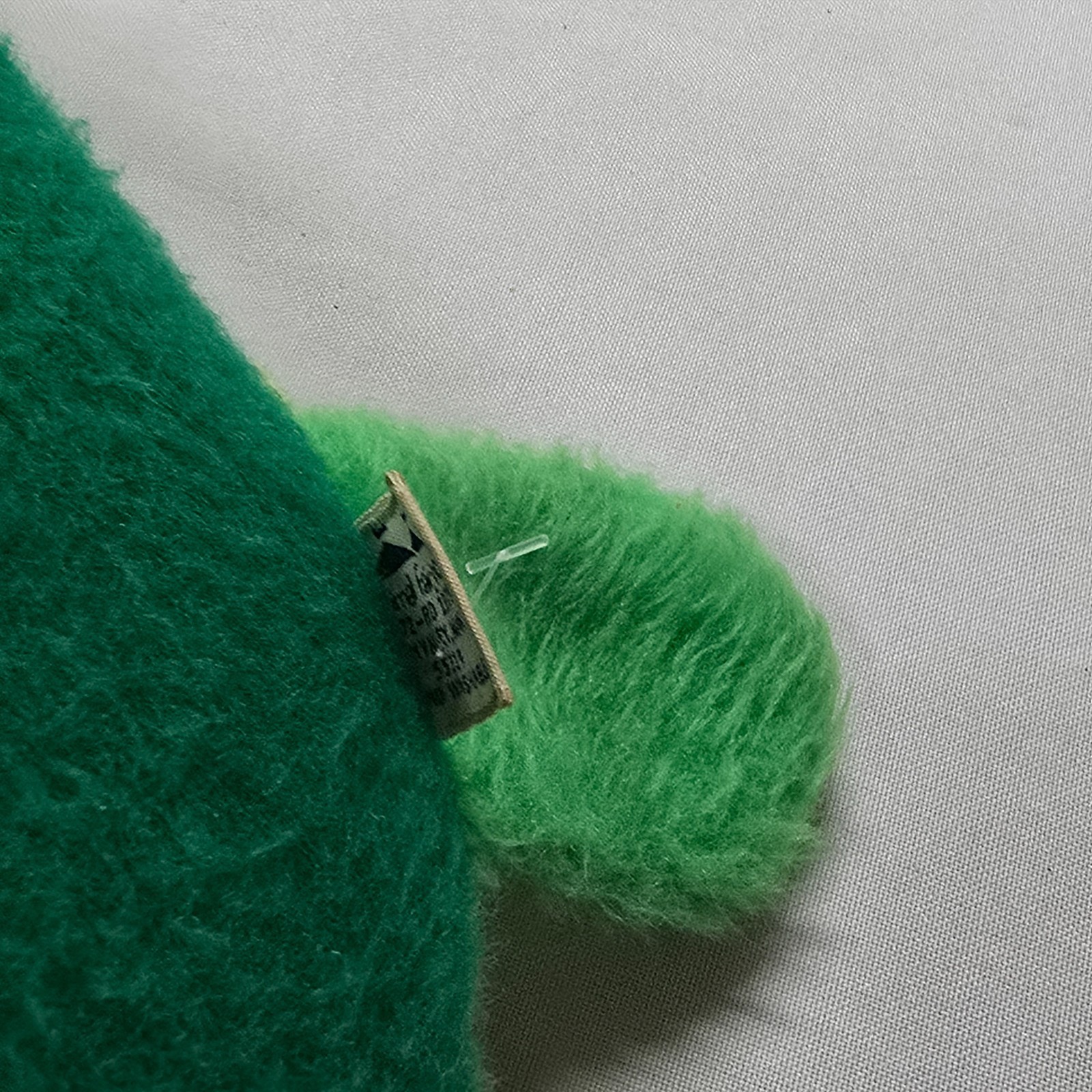 Used,. Neck is floppy. Small issue with seam near tail, could use stitching repair. Felt that made up smile came off and sharpie marker was used to draw on the mouth instead. Smoke-free home.
