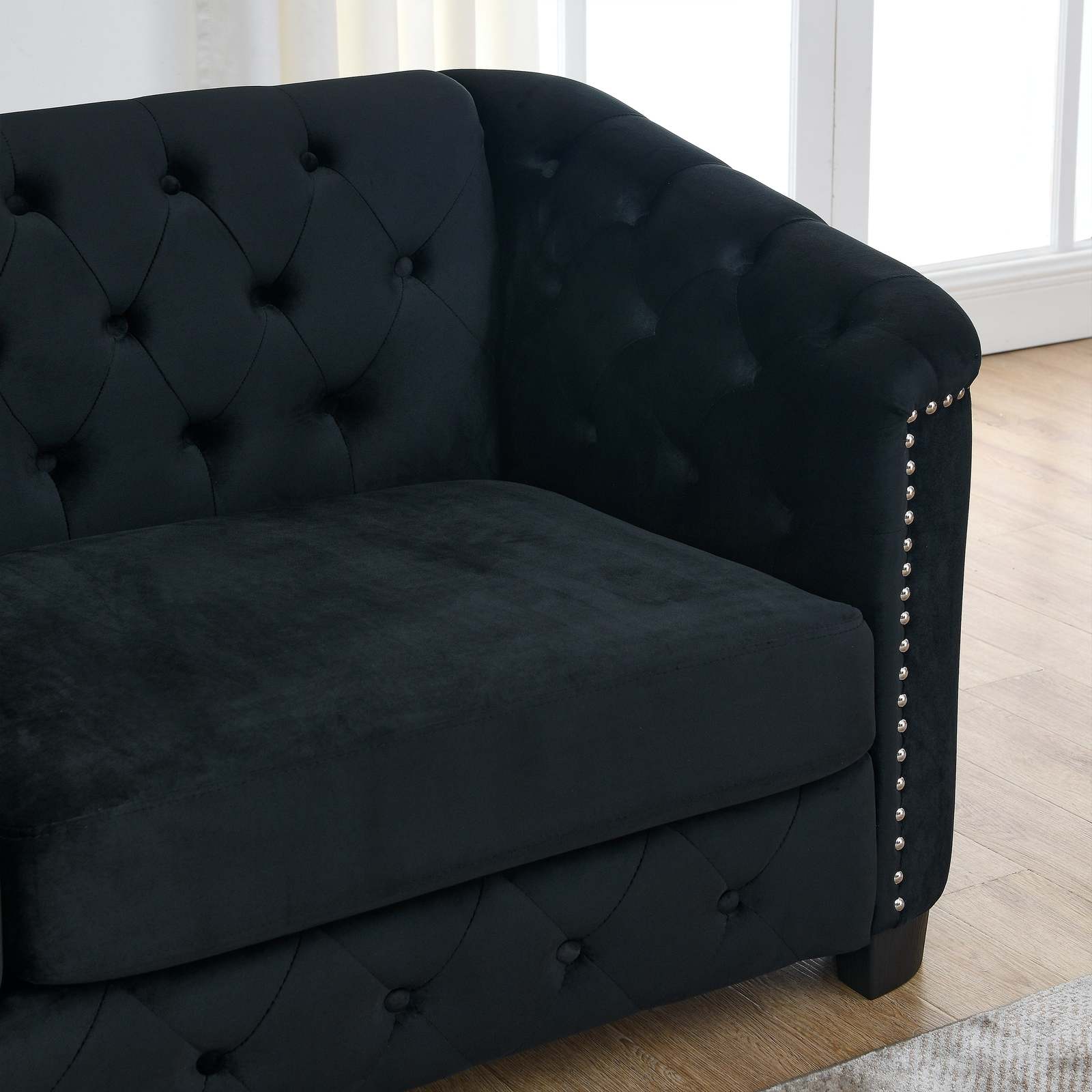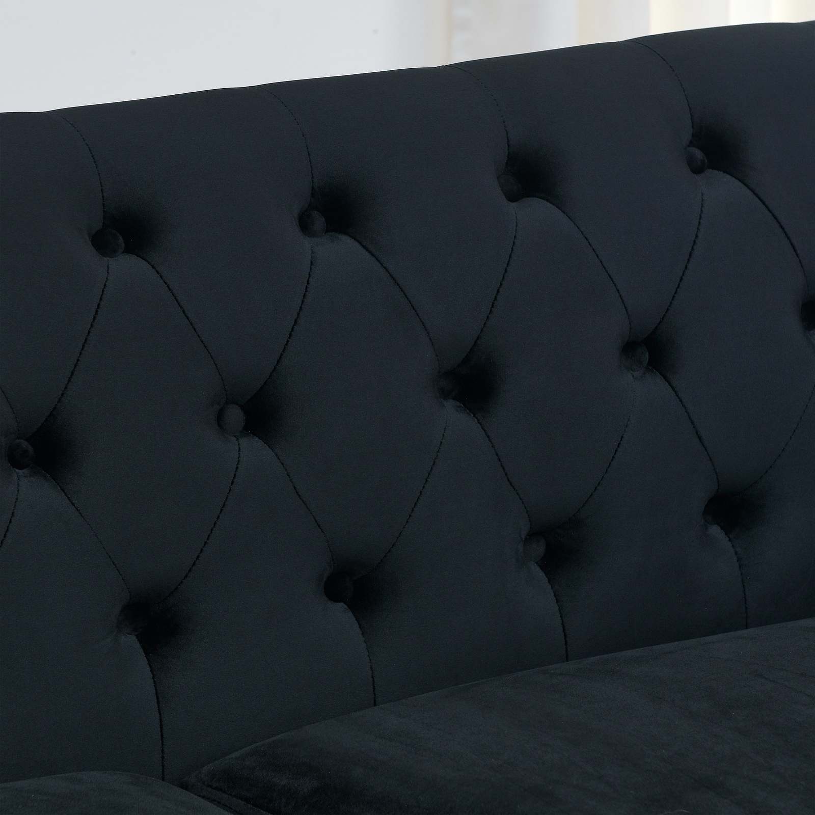 59" Black Velvet Modern Chesterfield 2-Seater Sofa Nailhead