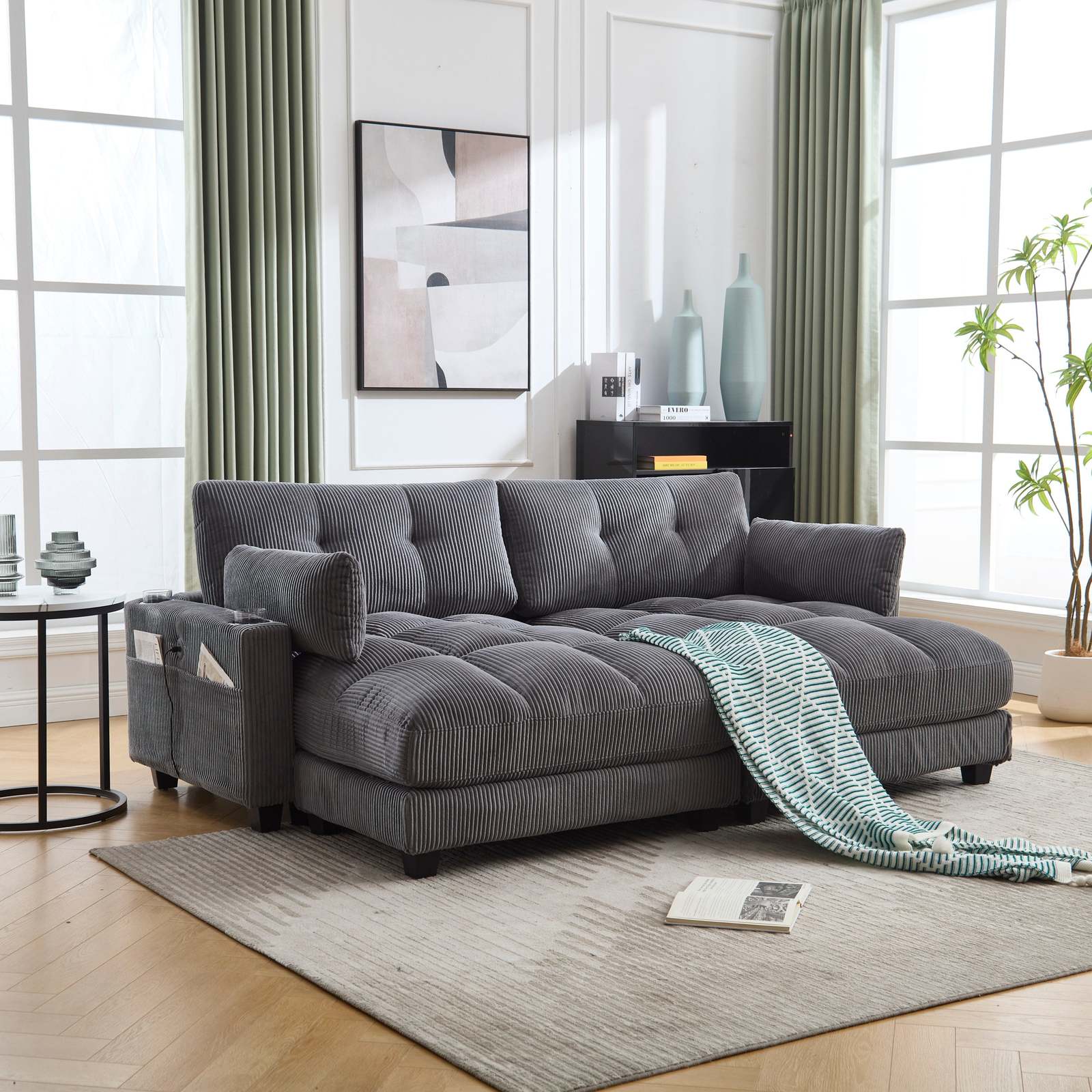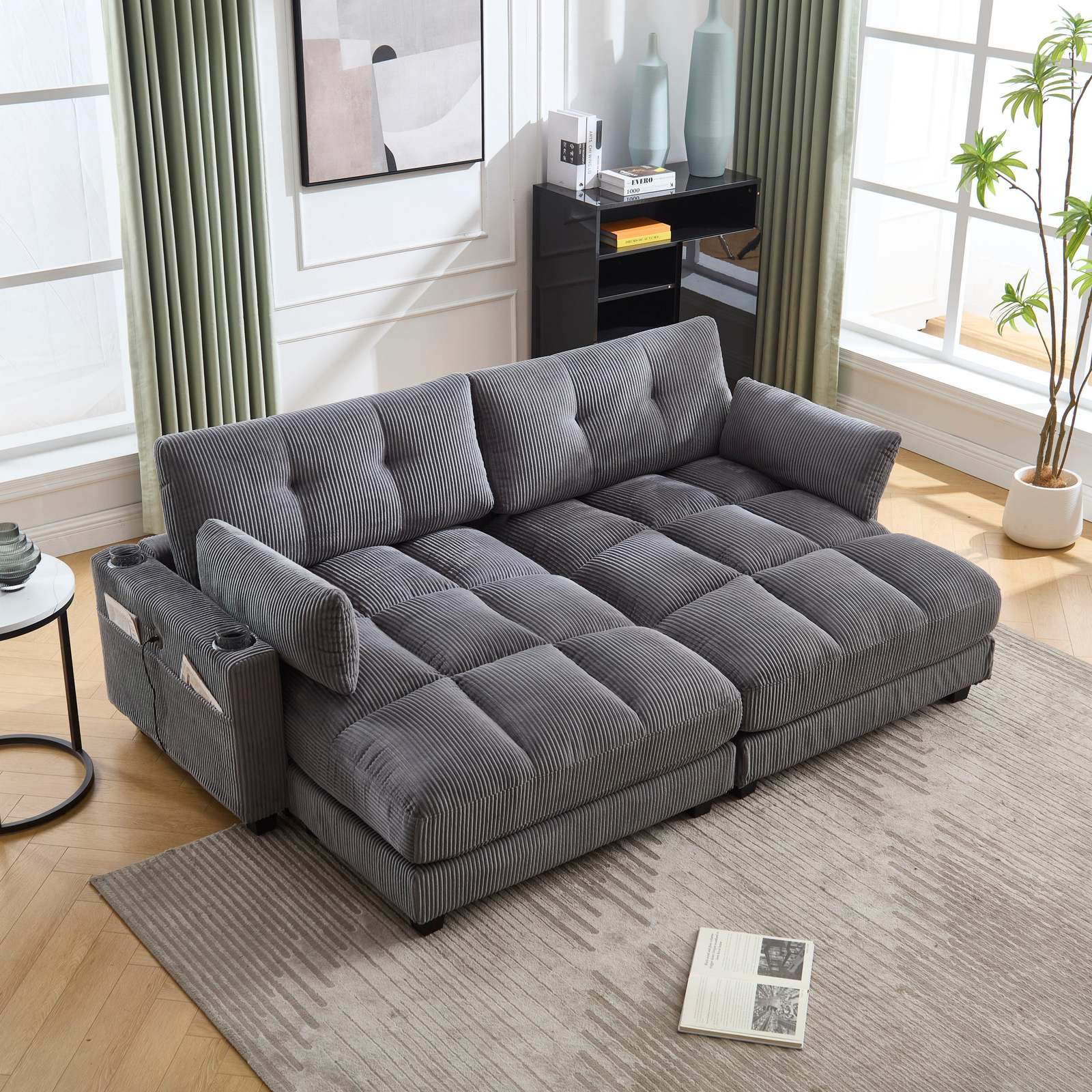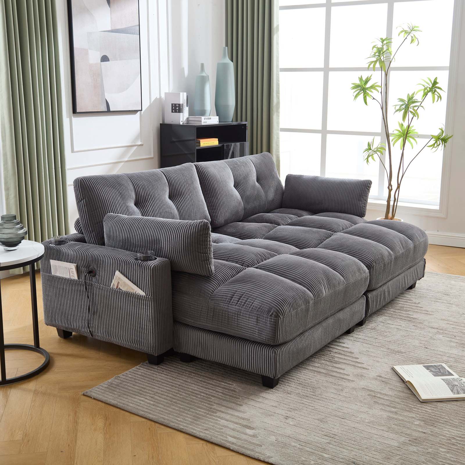 Side pocket design: The side pocket design of the sofa is extremely considerate. It is both aesthetically pleasing and practical, allowing you to conveniently store your frequently used items at hand.