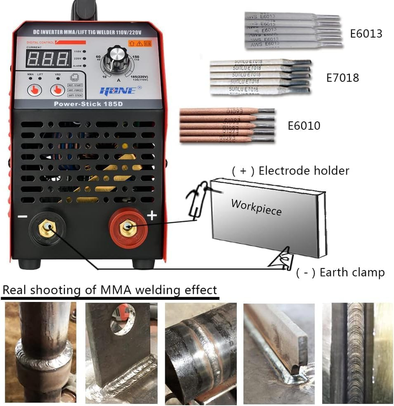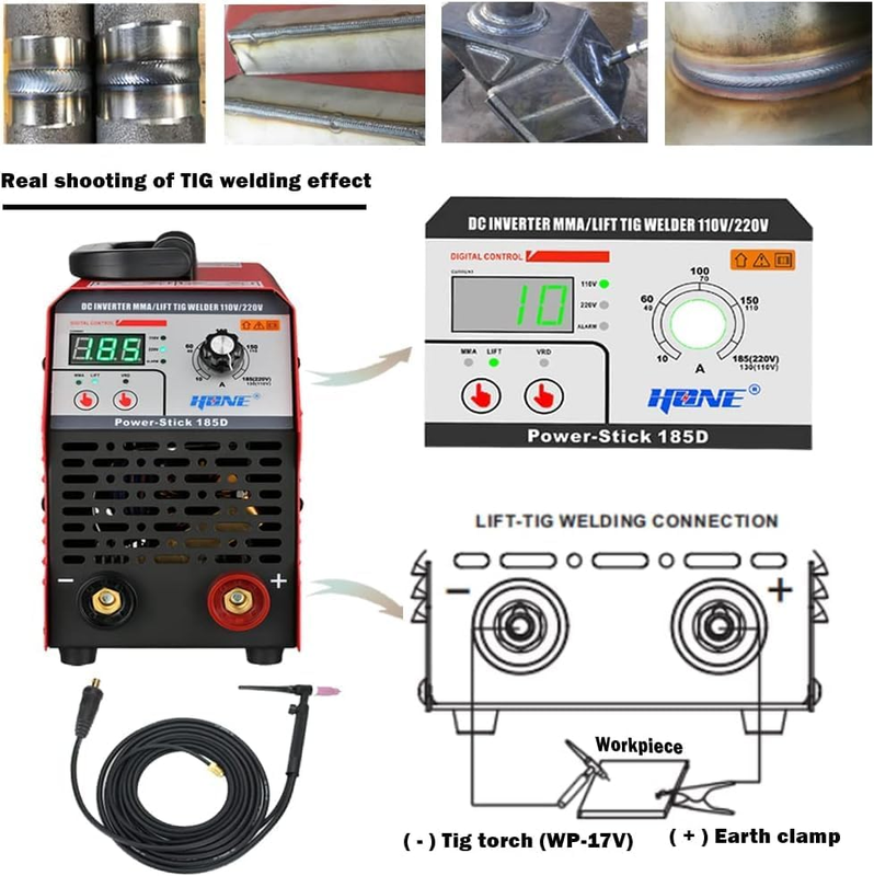 HONE ARC Welder, Actual 185Amp 110V/220V Stick Welder with Lift Tig Function, Digital IGBT Inverter Welding Machine with Hot Start Arc Force Anti-Stick VRD, High Duty Cycle for 1/16"-5/32" Welding Rod