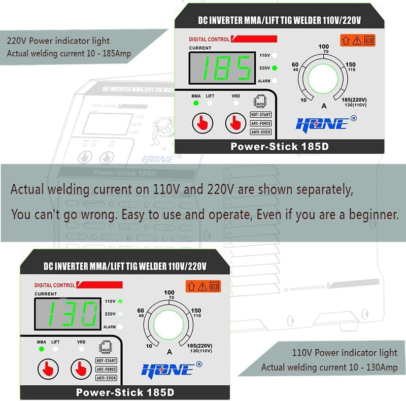 HONE ARC Welder, Actual 185Amp 110V/220V Stick Welder with Lift Tig Function, Di