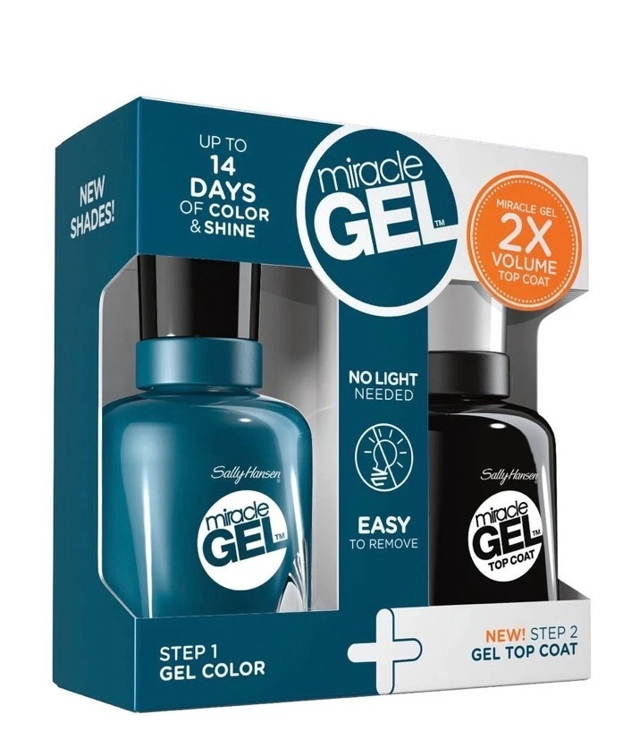 Sally Hansen Miracle Gel 2 Step Top Coat & Gel Nail Polish, #220 Teal Twin