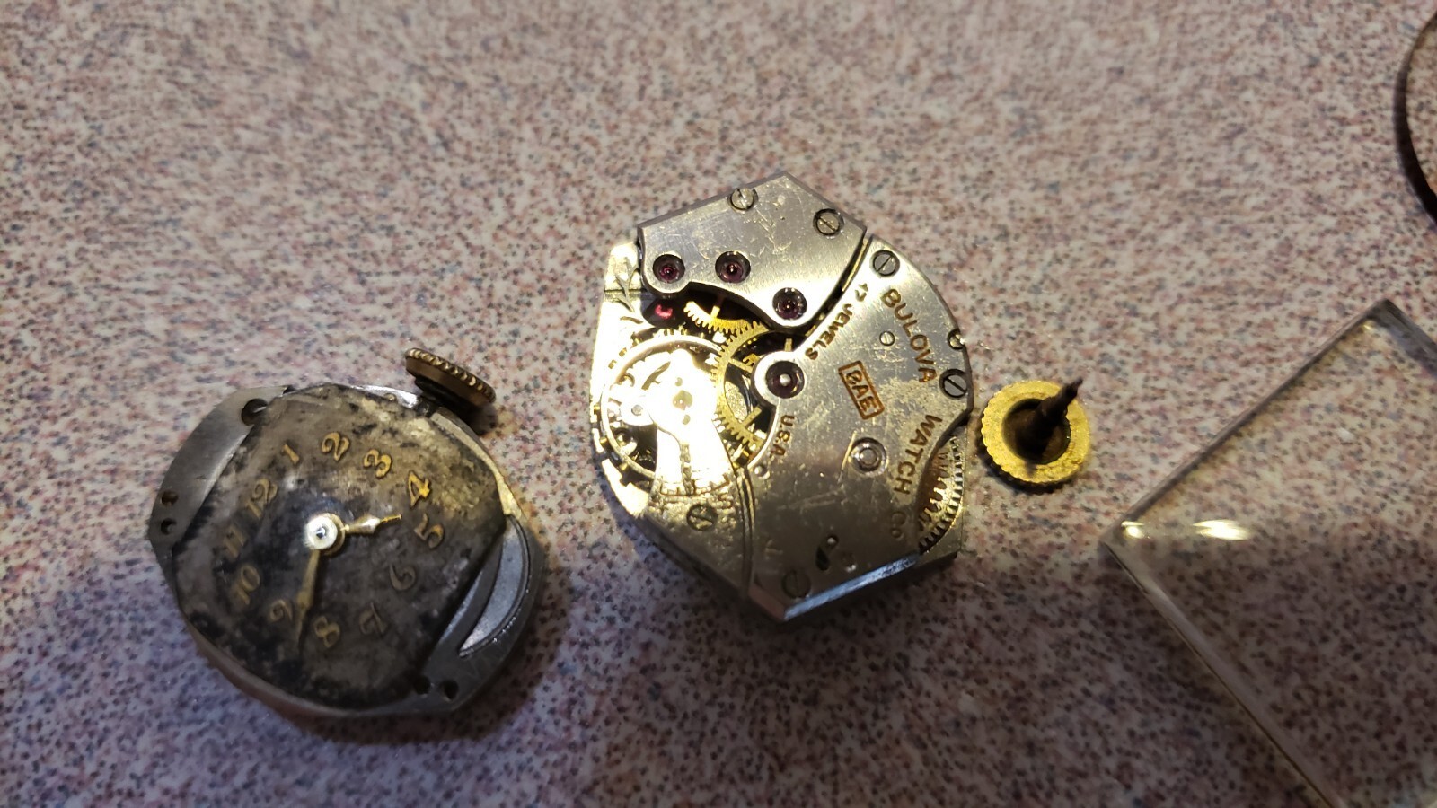 Joli Vintage Femmes Bulova Montre Pieces Lot Etui Cristal Mouvement Ressort 5BD