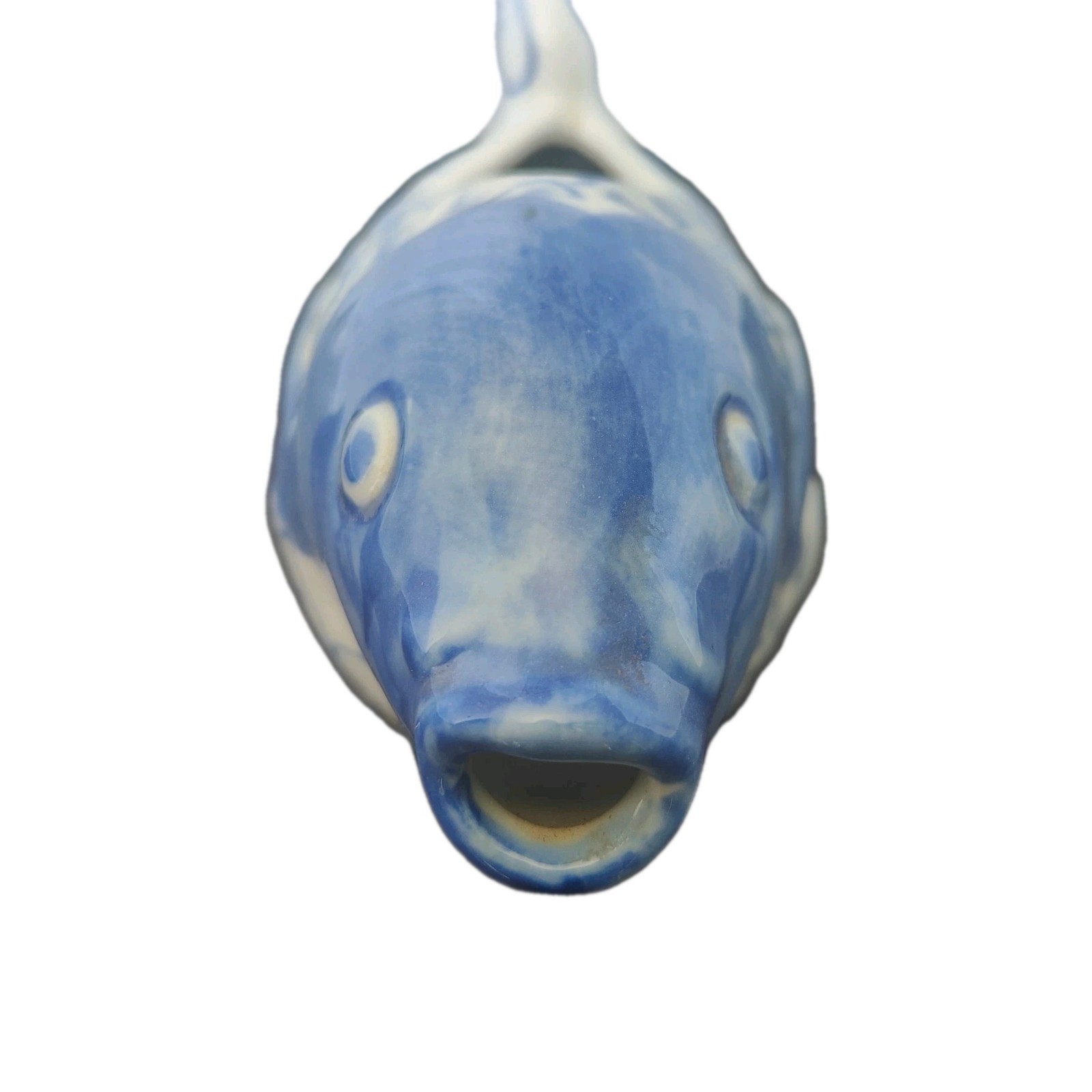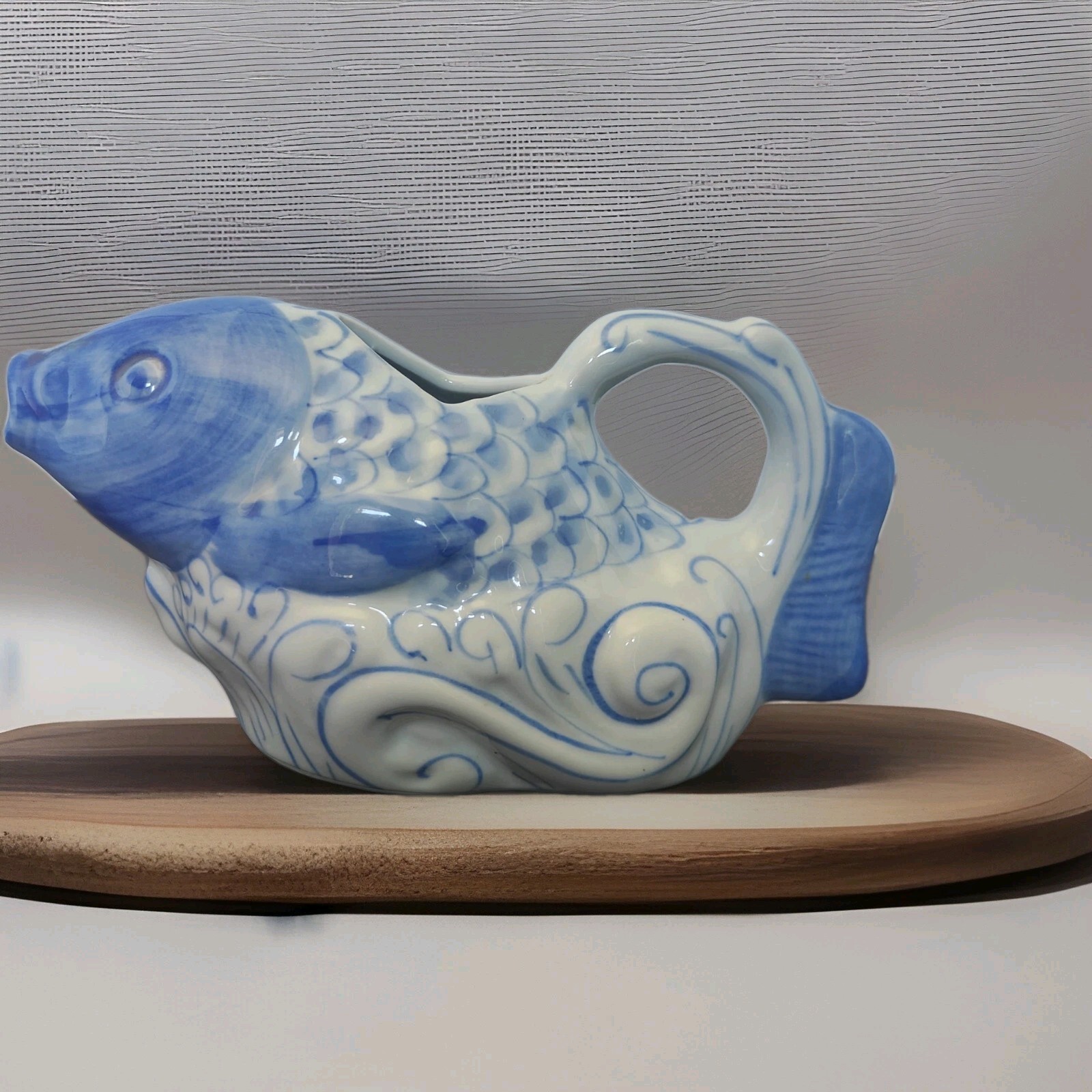 This Antique Porcelain Chinese Koi Carp Fish Tea Pot Creamer is a unique and decorative piece perfect for all occasions. The blue and white nautical-themed teapot/creamer features a traditional Asian pattern with a fish design, making it a vintage collectible from the 1920-1949 time period. This is made of high-quality porcelain, showcasing intricate details and craftsmanship. Made in China, this vintage tea pot is a rare find for collectors of vintage and oriental dinnerware.