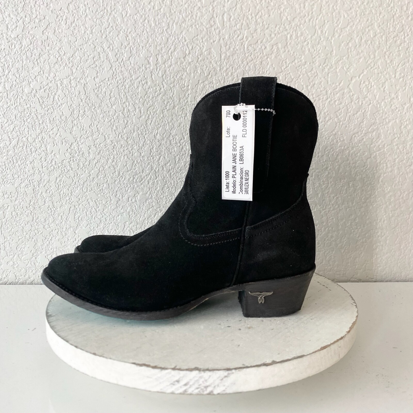 Lane PLAIN JANE Cowboy Boots in Jet Black Suede Leather with a Sculpted Round Toe and Ankle shaft with a Zipper Closure