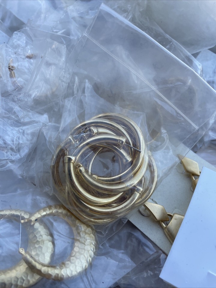 This product vintage USA-made necklaces and earrings of high quality. The earrings are stylish and elegant, perfect for adding a touch of vintage charm to any outfit. Made in the USA, they ensure a level of craftsmanship and quality that is hard to come by in today's market. The gold tone color adds a touch of sophistication and timeless appeal to these earrings, making them a versatile option for various occasions. ALL NAME BRAND ITEMS