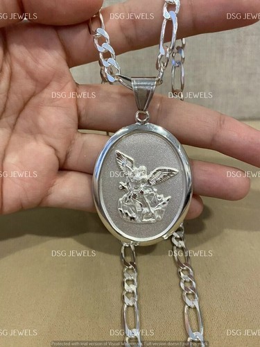 St. Michael the Archangel, "Patron Saint of Warriors, Law Enforcement, Protectors" Medallion 26x18mm (1x0.7in) Pendant in .925 Sterling Silver