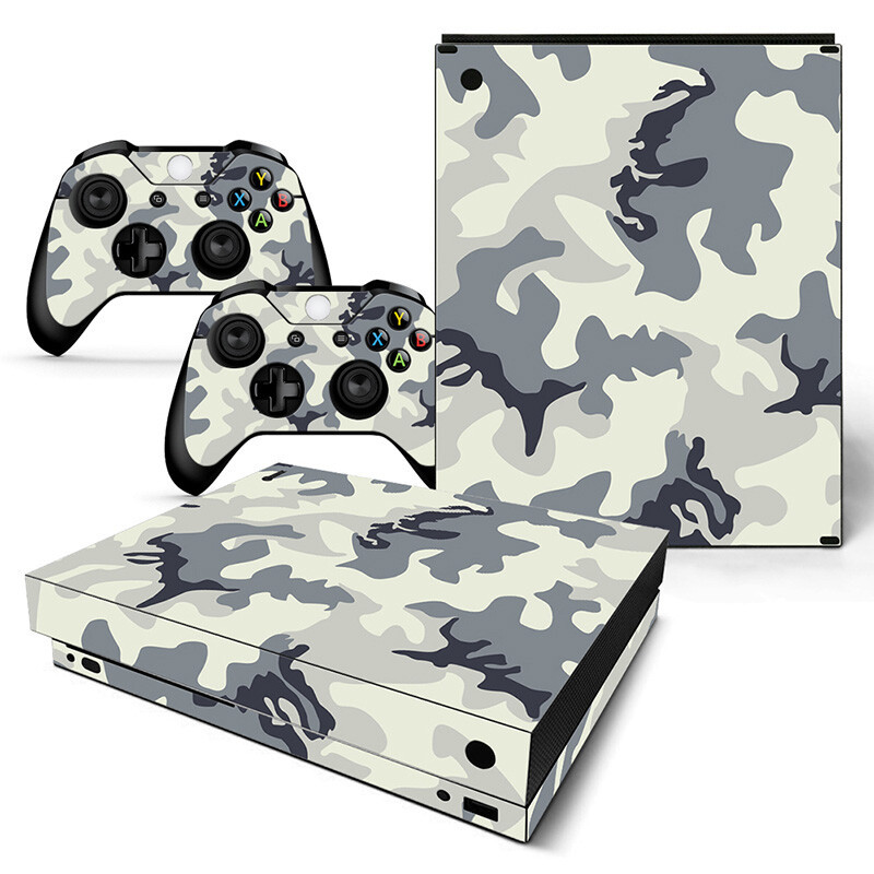 For Xbox One X Console & 2 Controllers White Camo Vinyl Skin Decal